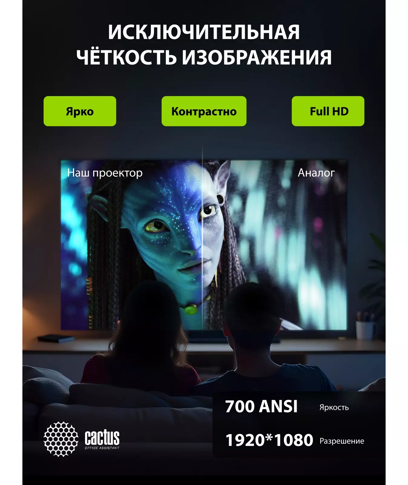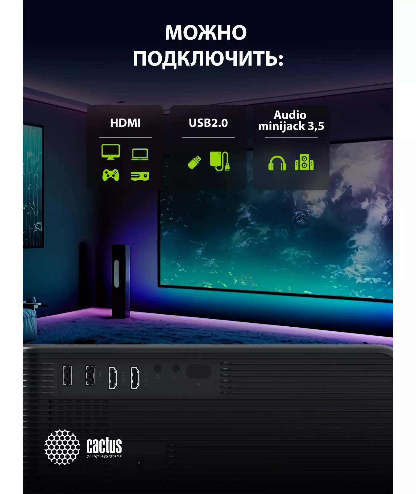 Проектор Cactus CS-PRM.01B Full HD LCD 700Lm ANSI (1920x1080) 2500:1 ресурс лампы:50000 часов 2xUSB typeA 2xHDMI 1.8кг RTL [CS-PRM.01B.WUXGA]