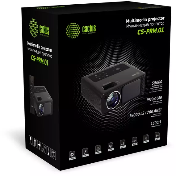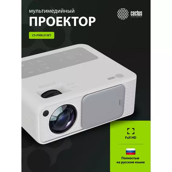 Проектор Cactus CS-PRM.01WT Full HD LCD 700Lm ANSI (1920x1080) 2500:1 ресурс лампы: 50000 часов 2xUSB typeA 2xHDMI 1.8кг [CS-PRM.01WT.WUXGA]