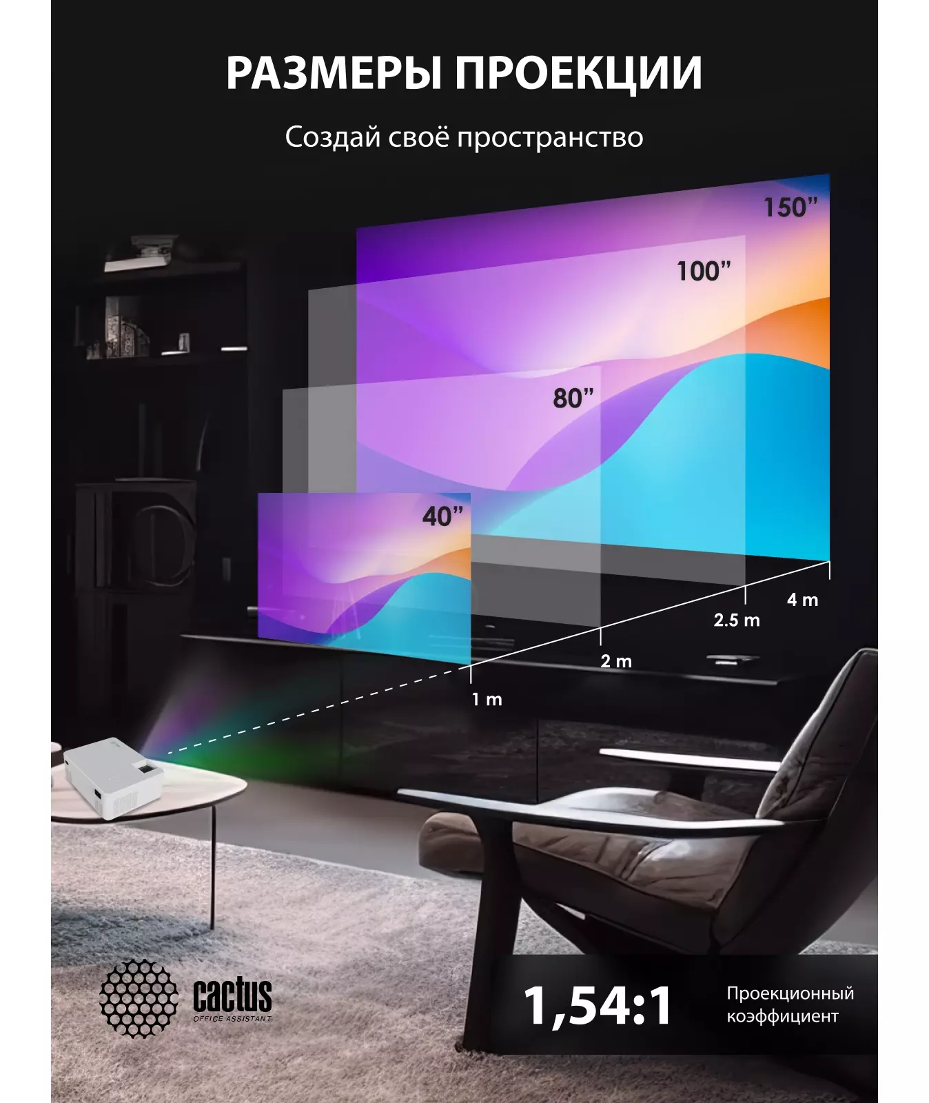 | Возможность по установке | Фронтальная проекция, Обратная проекция, Крепление к потолку |