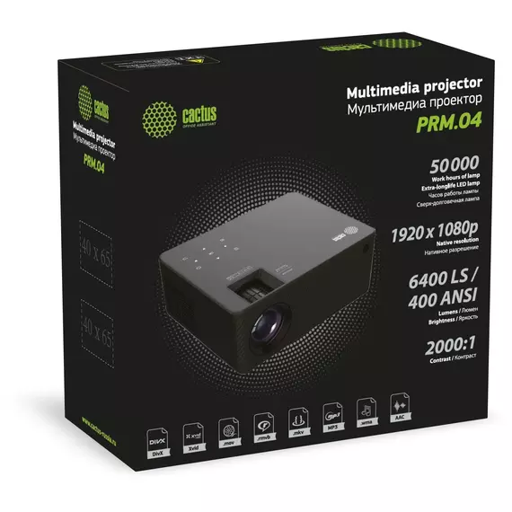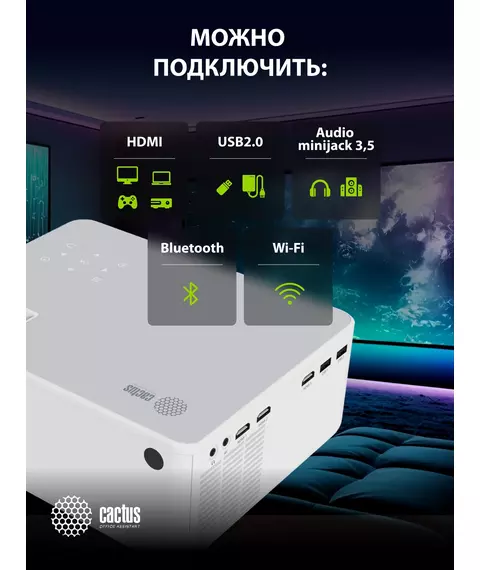 Проектор Cactus CS-PRM.04WT.WUXGA-A LCD 6400Lm LS 400Lm ANSI (1920x1080) 2000:1 ресурс лампы:50000часов 2xUSB typeA 3xHDMI 2.5кг