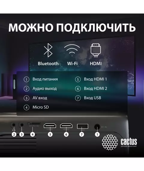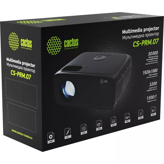 Проектор Cactus CS-PRM.07B.WUXGA LCD, 3200Lm, 320Lm ANSI, 1920x1080, 1500:1, 50000 ч, 1xUSB, 3xHDMI, 1.16кг