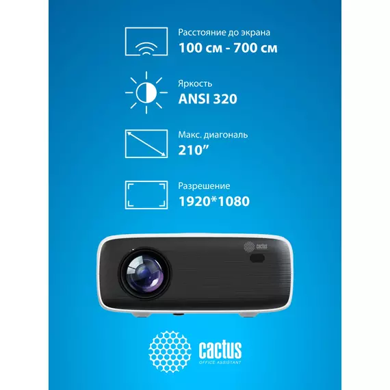 Проектор Cactus CS-PRM.07WT.WUXGA LCD, 3200Lm, 320Lm ANSI, 1920x1080, 1500:1, 50000 ч, 1xUSB, 3xHDMI, 1.16кг