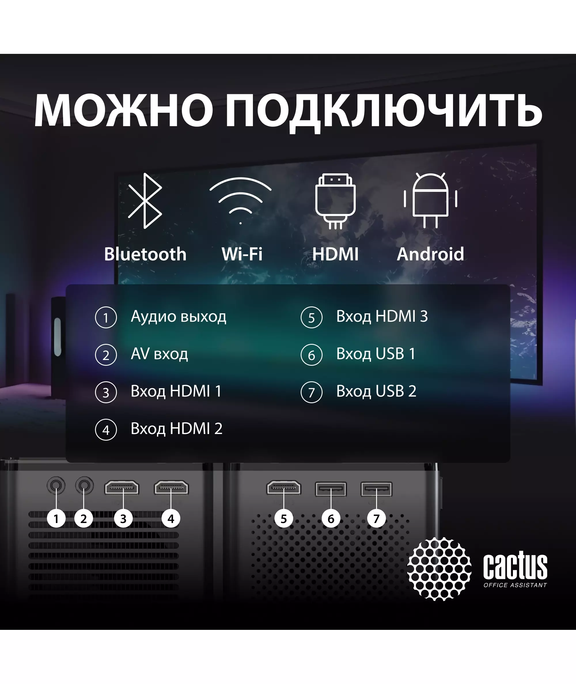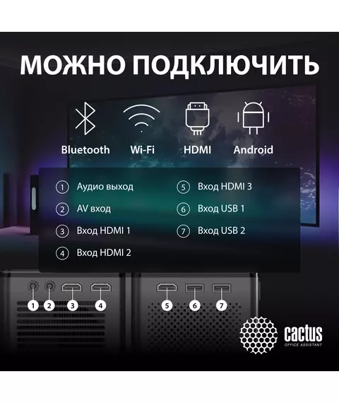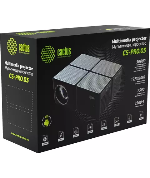Проектор Cactus CS-PRO.03B.WUXGA-A LCD, 7500Lm, 750Lm ANSI, 1920x1080, 2300:1, 30000 ч, 2xUSB, 3xHDMI, 1.73кг