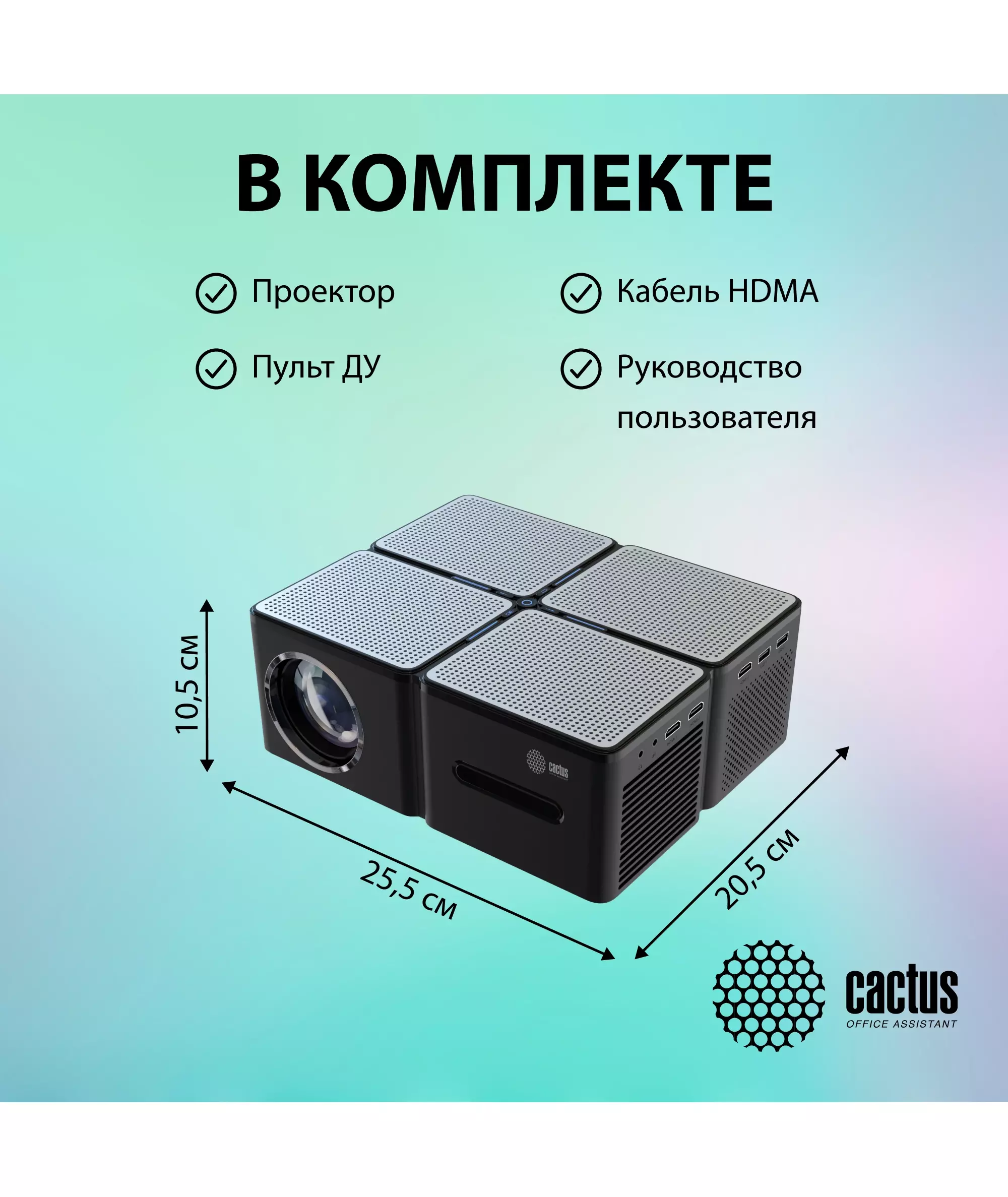 | Комплектация | • Проектор• Пульт ДУ• Руководство пользователя• Кабель питания и адаптер• Кабель HDMI• Салфетка из микрофибры |