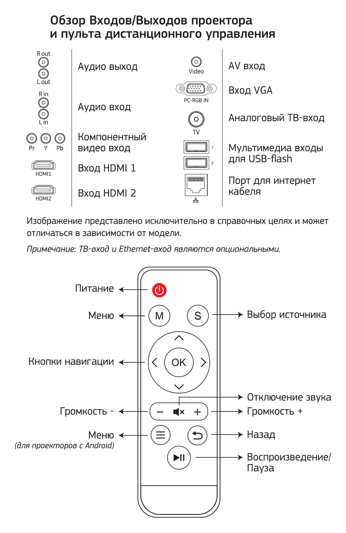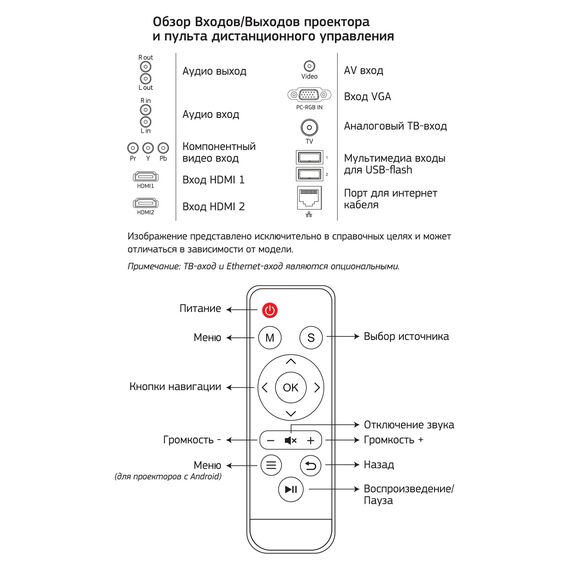| Возможность по установке | Фронтальная проекция, Обратная проекция, Крепление к потолку |
