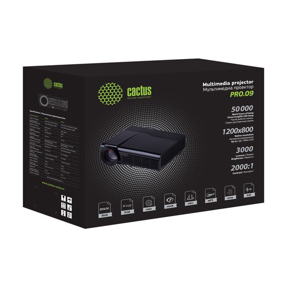 Проектор Cactus CS-PRO.09B.WXGA-W LCD, 3000Lm, 300Lm ANSI, 1280x720, 2000:1, 50000 ч, 2xUSB, 2xHDMI, 4.7кг