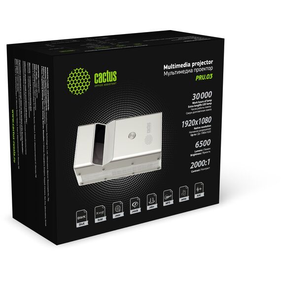 Проектор Cactus CS-PRU.03B.WUXGA-A DLP, 6500Lm, 650Lm, 1920x1080, 2000:1, 30000 ч, 2xUSB typeA, 1xHDMI, 1.5кг