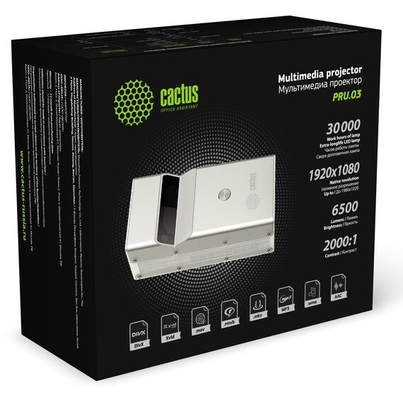 Проектор Cactus CS-PRU.03WT.WUXGA-A DLP, 6500Lm, 1920x1080, 2000:1, 30000 часов, 2xUSB, 1xHDMI, 1.5кг