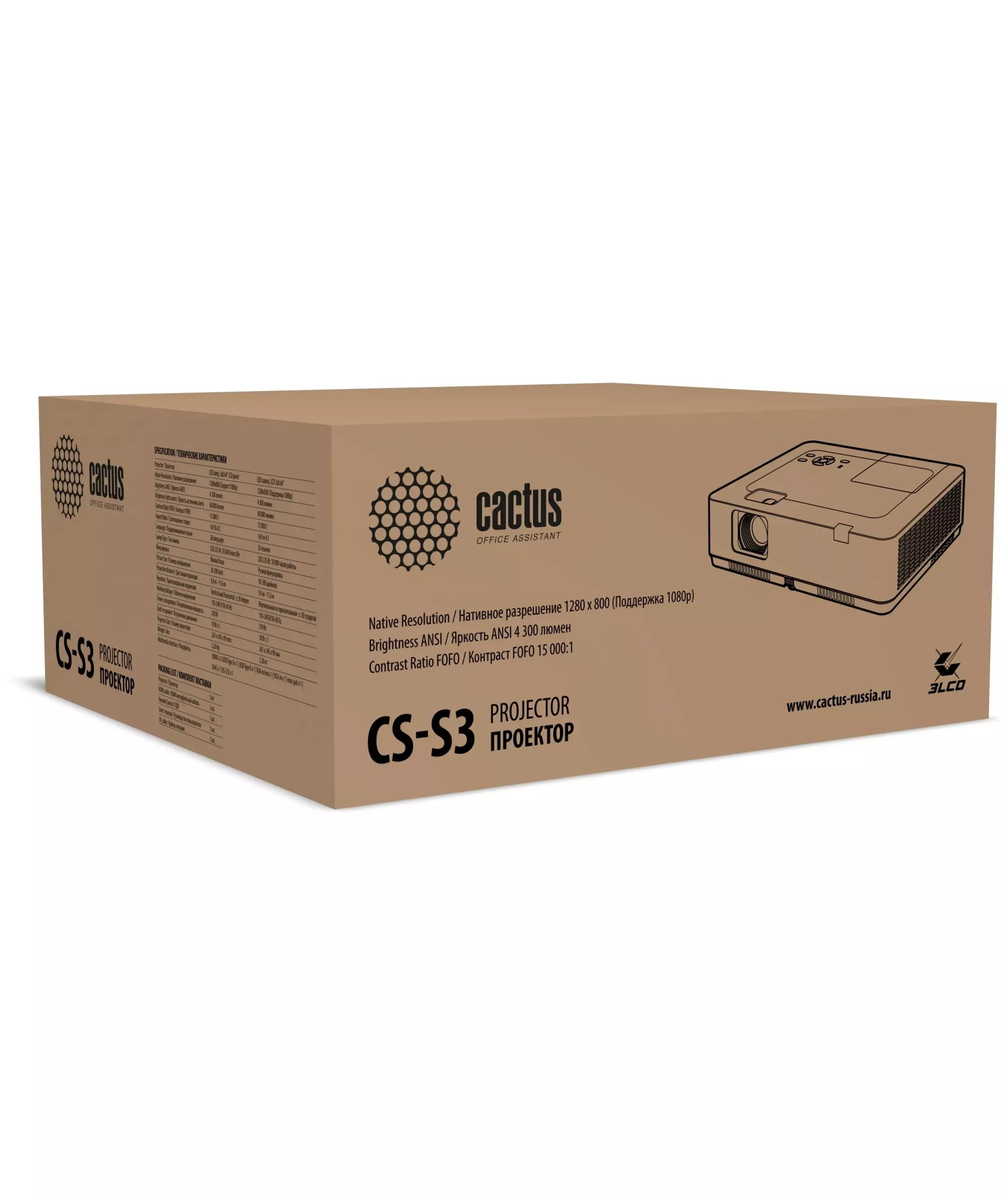 Проектор Cactus CS-S3.B 3LCD 43000Lm LS 4300Lm ANSI (1280x1024) 15000:1 ресурс лампы 10000 часов 1xUSB typeA 2xHDMI 4.7кг