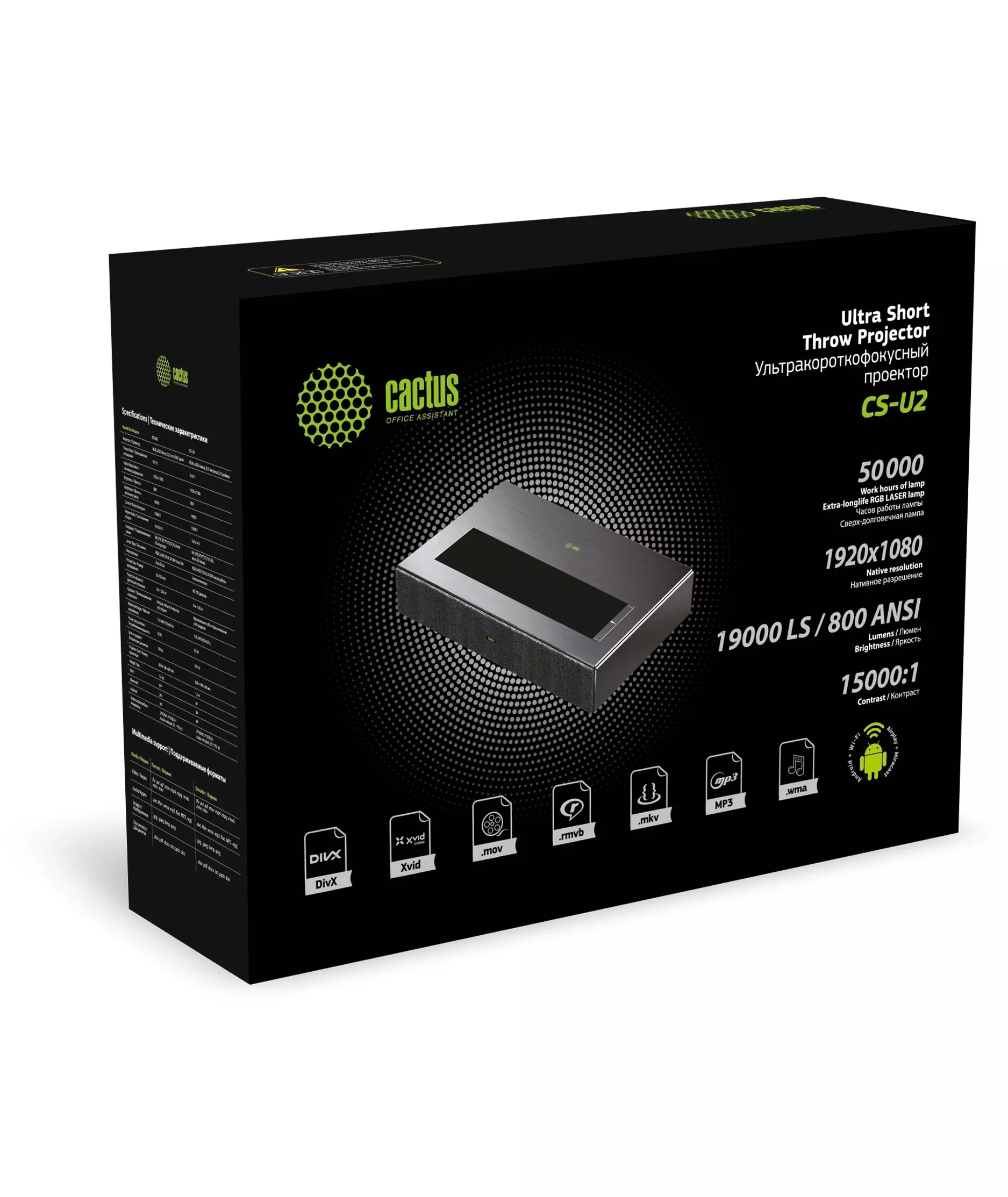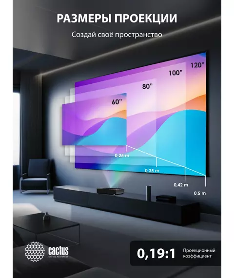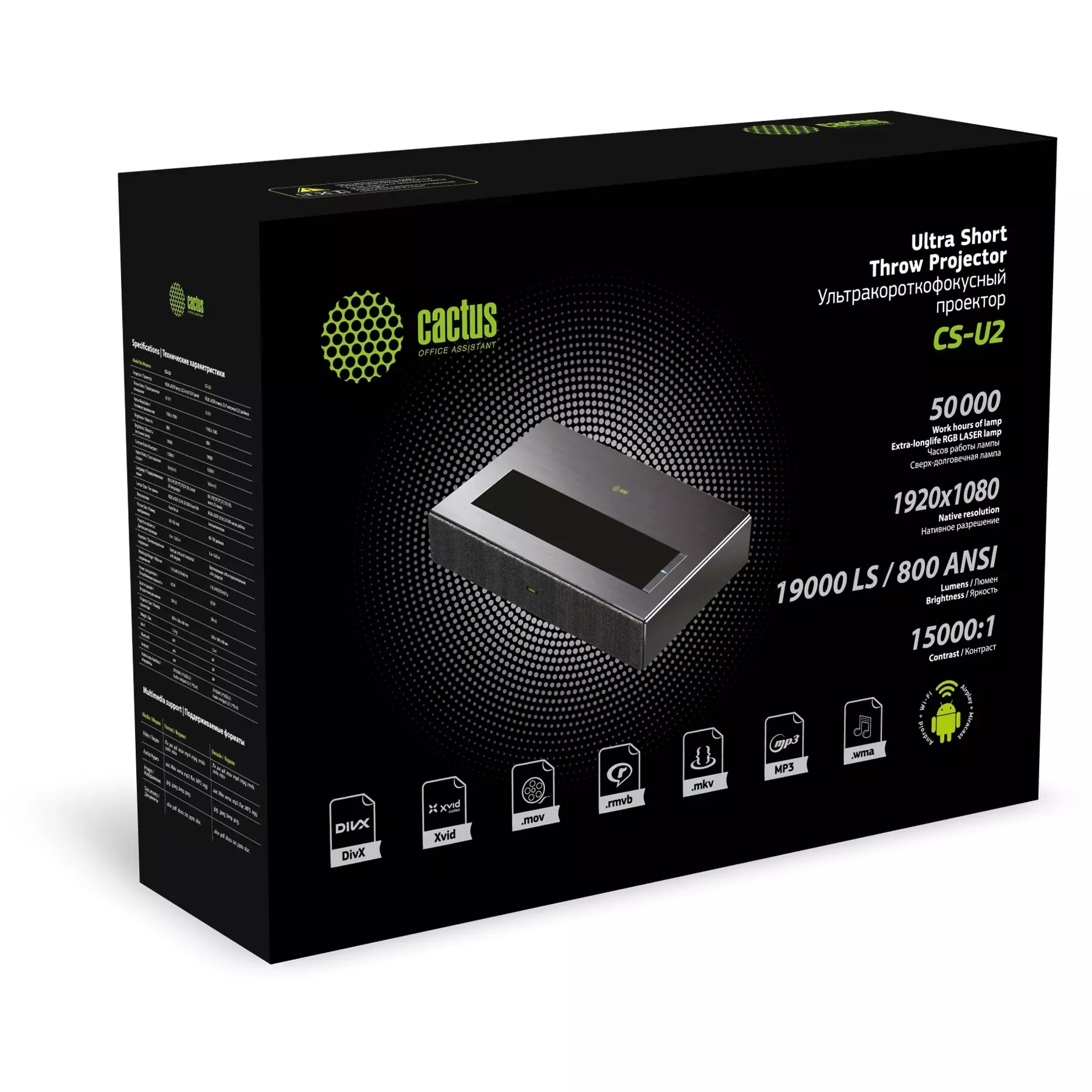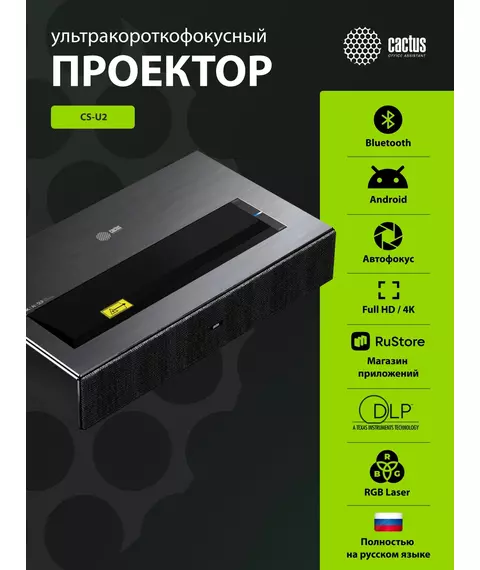 Проектор Cactus CS-U2.B DLP 19000Lm LS 800Lm ANSI (1920x1080) 15000:1 ресурс лампы:50000часов 2xUSB typeA 2xHDMI 1.78кг