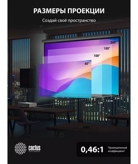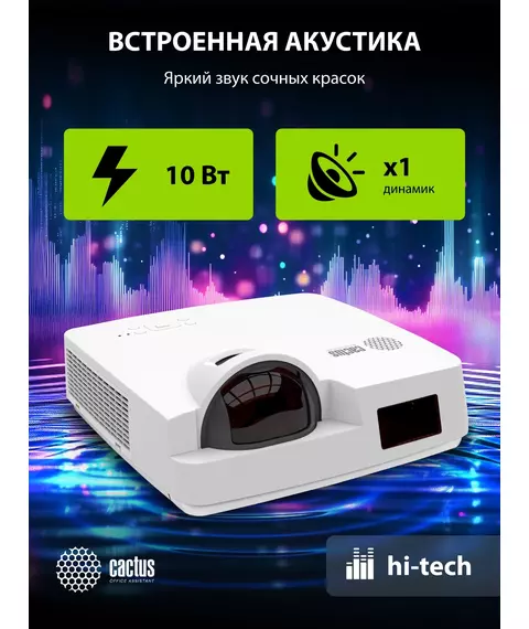Проектор Cactus CS-V1.WT Bright 3LCD 64000Lm LS 4000Lm ANSI (1024x768) 30000:1 ресурс лампы 10000часов 1xUSB typeA 1xUSB typeB 2xHDMI 4кг