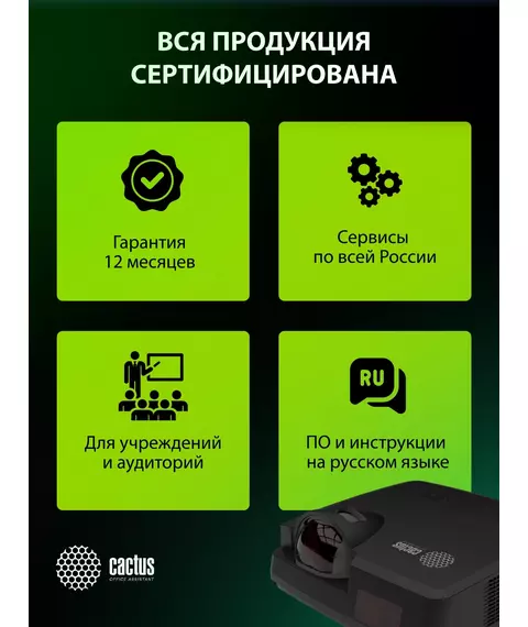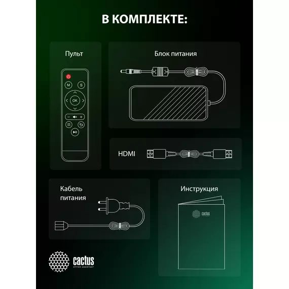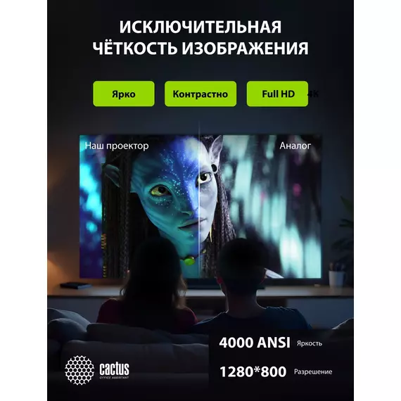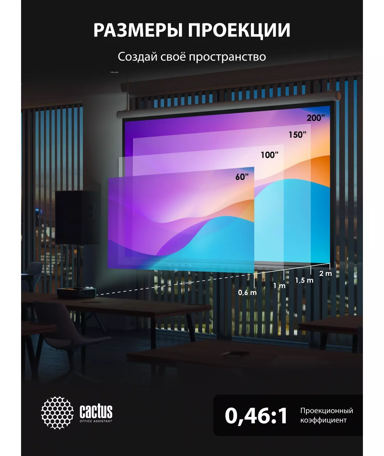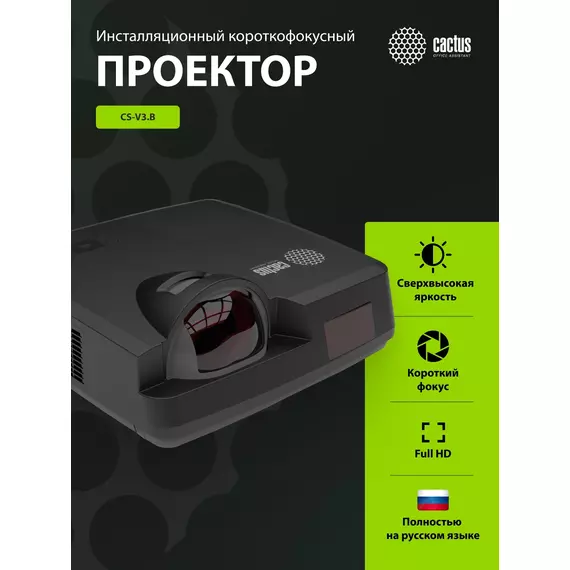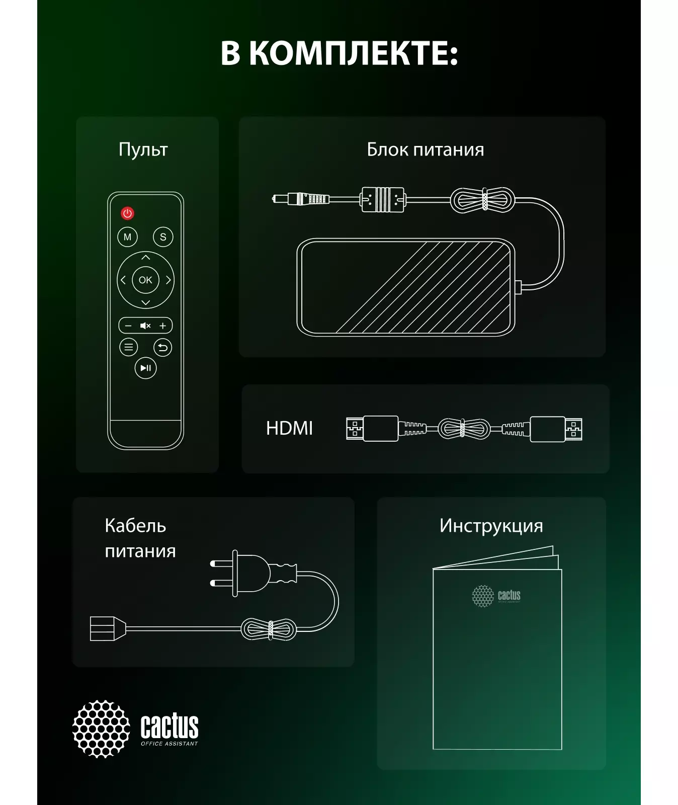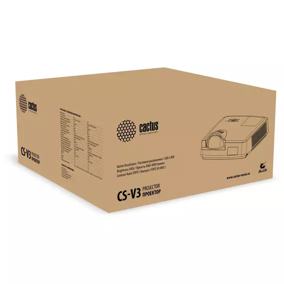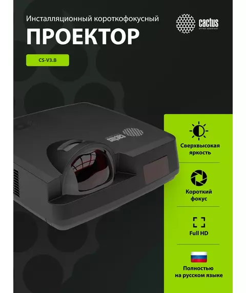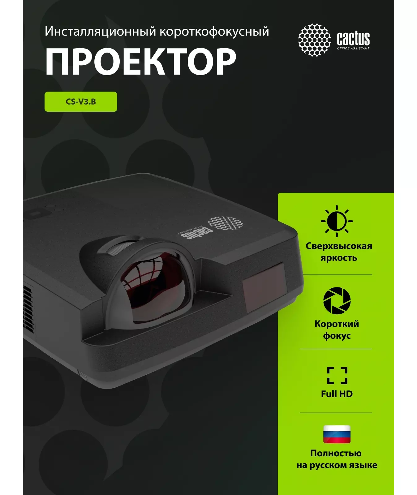 Проектор Cactus CS-V3.B Bright 3LCD 64000Lm LS 4000Lm ANSI (1280x800) 30000:1 ресурс лампы 10000часов 1xUSB typeA 1xUSB typeB 2xHDMI 4кг