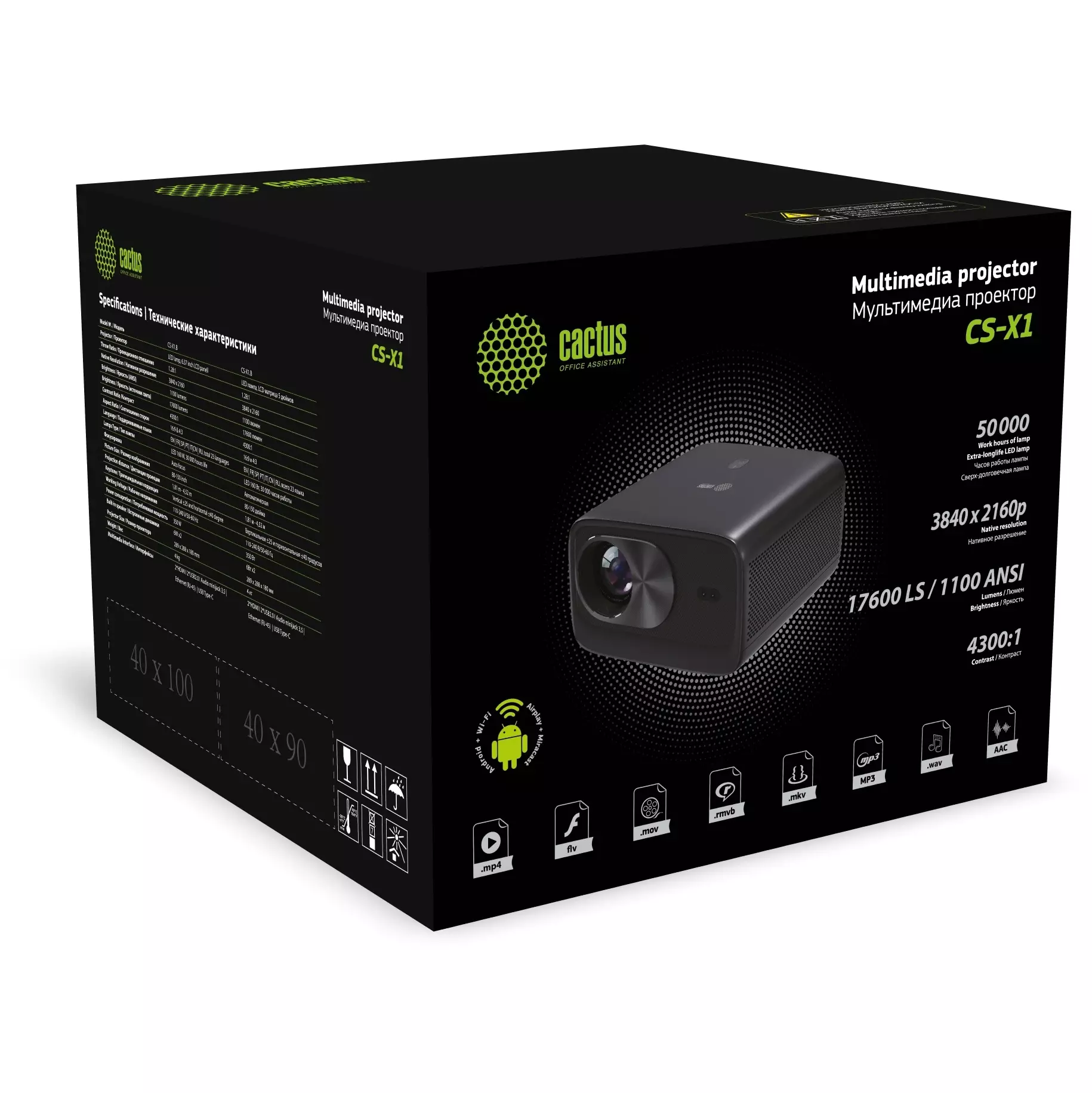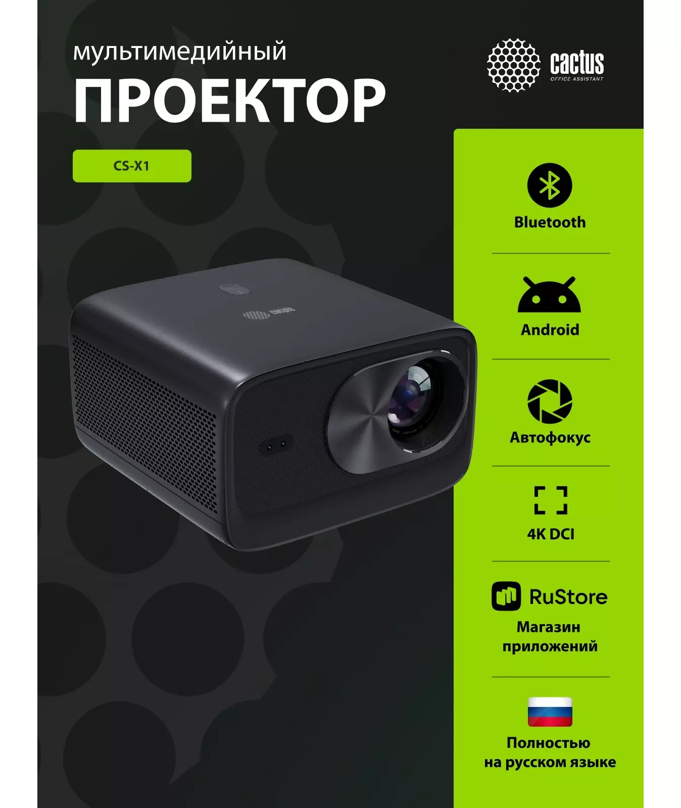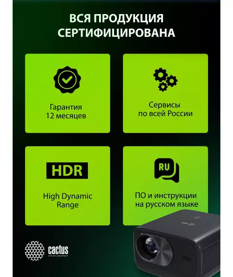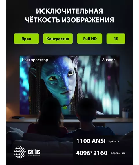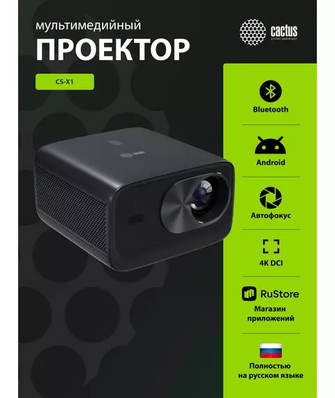 Проектор Cactus CS-X1.B LCD 17600Lm LS 1100Lm ANSI (4096x2160) 4300:1 ресурс лампы:50000часов 2xUSB typeA 2xHDMI 3кг