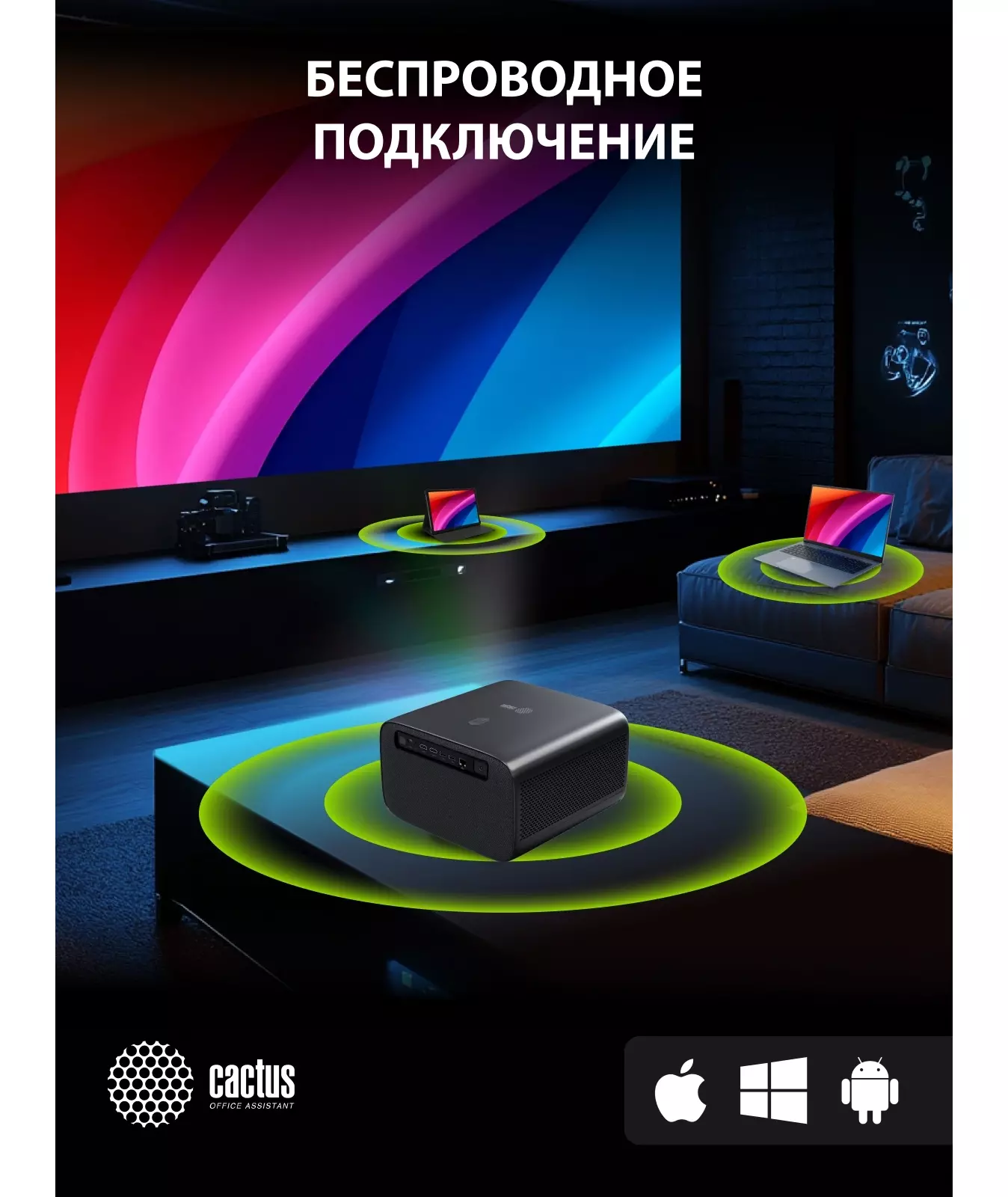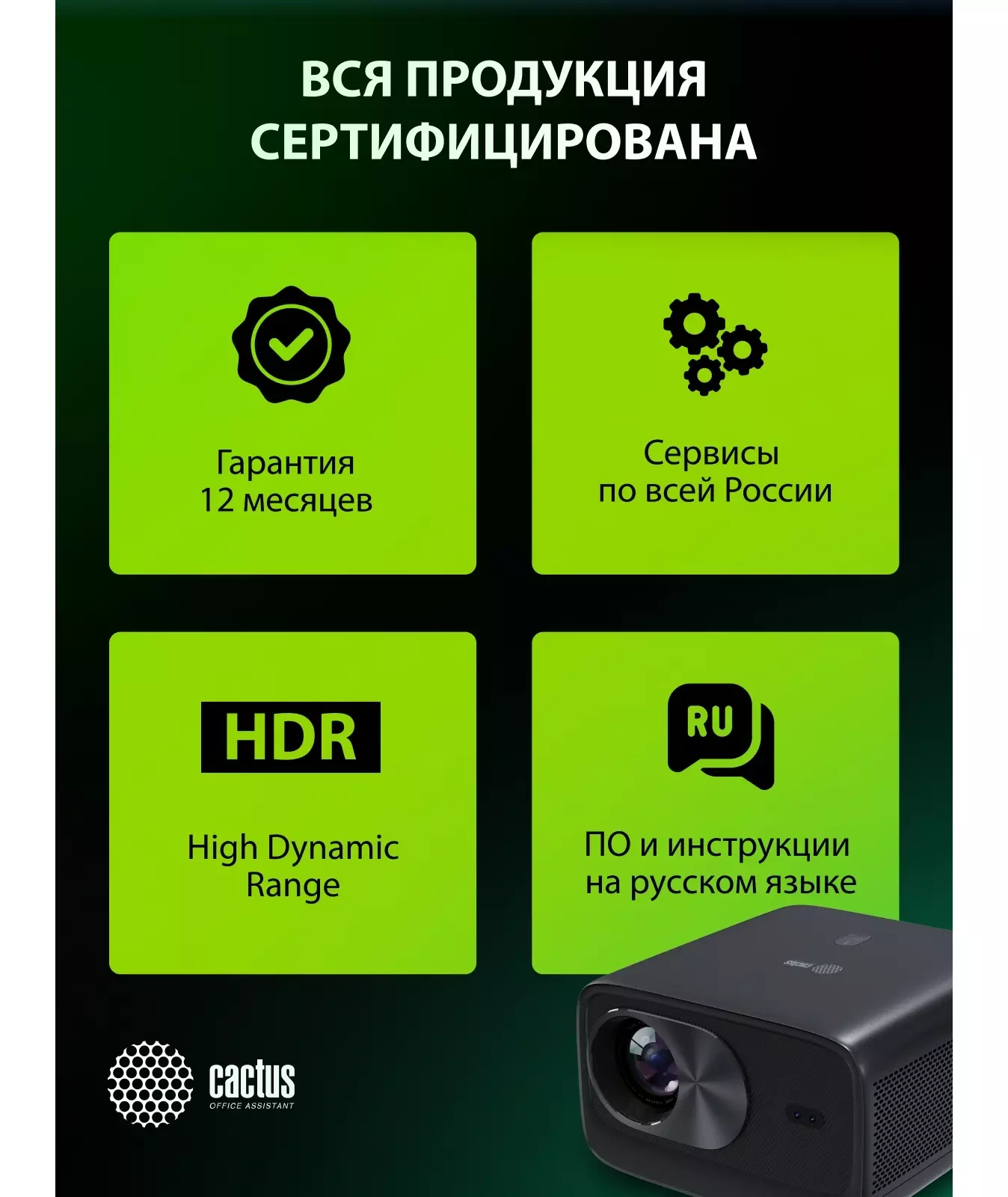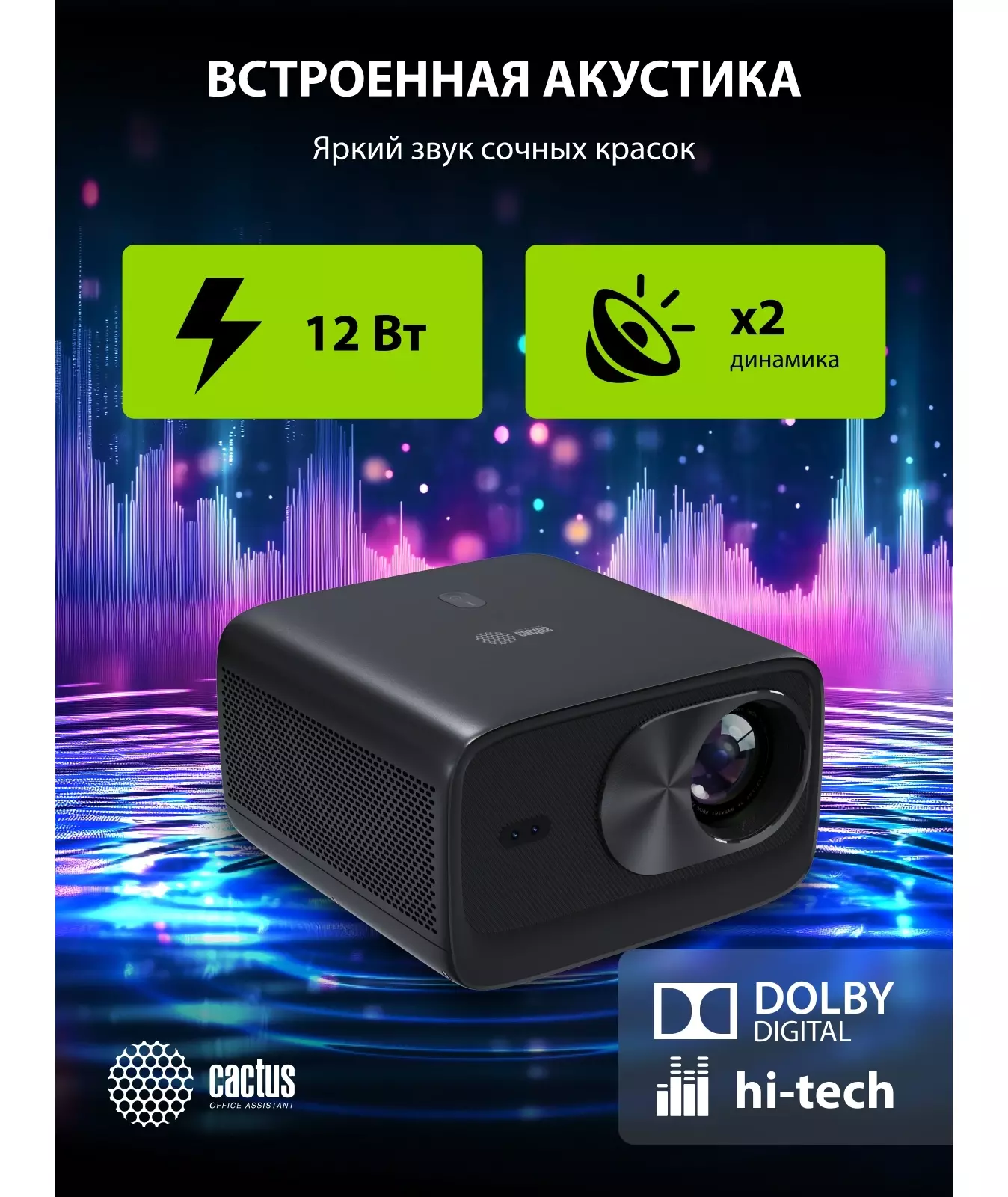 Проектор Cactus CS-X1.B LCD 17600Lm LS 1100Lm ANSI (4096x2160) 4300:1 ресурс лампы:50000часов 2xUSB typeA 2xHDMI 3кг