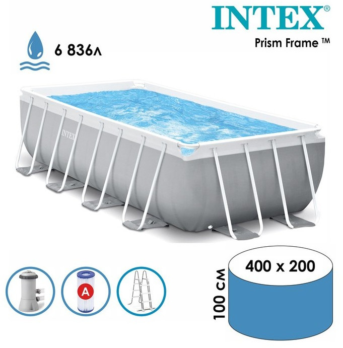 Бассейн каркасный Intex Prism Frame 400 х 200 х 100 см фильтр-насос, лестница [26788NP]