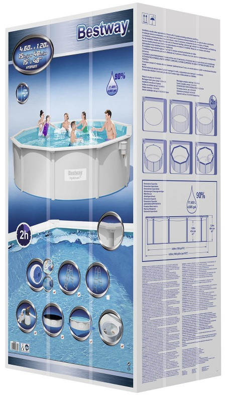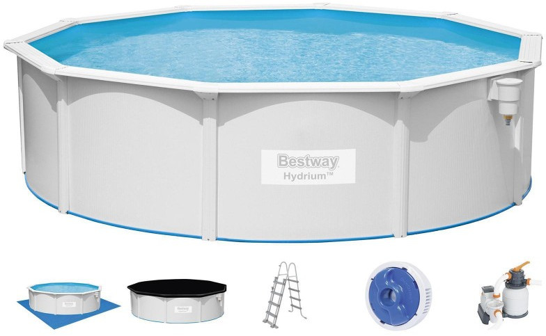 Бассейн стальной BestWay Hydrium 460 х 120 см песчаный фильтр-насос, лестница, подстилка, тент [56384]