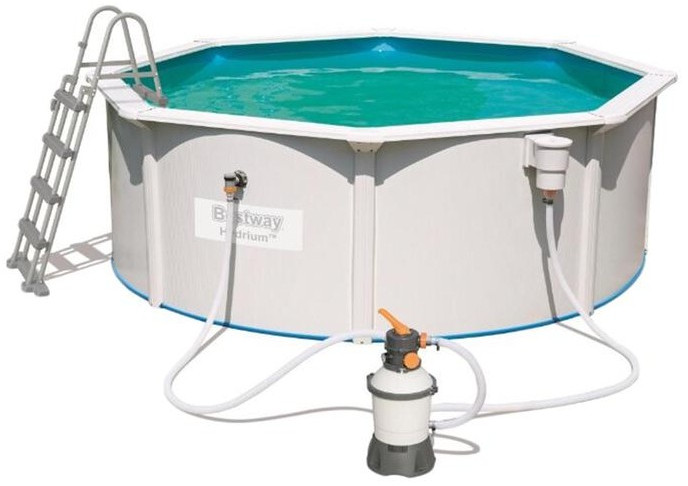 Бассейн каркасный стальной Bestway 360 x 120 см песочный фильтр-насос, лестница, тент, дозатор [56574]