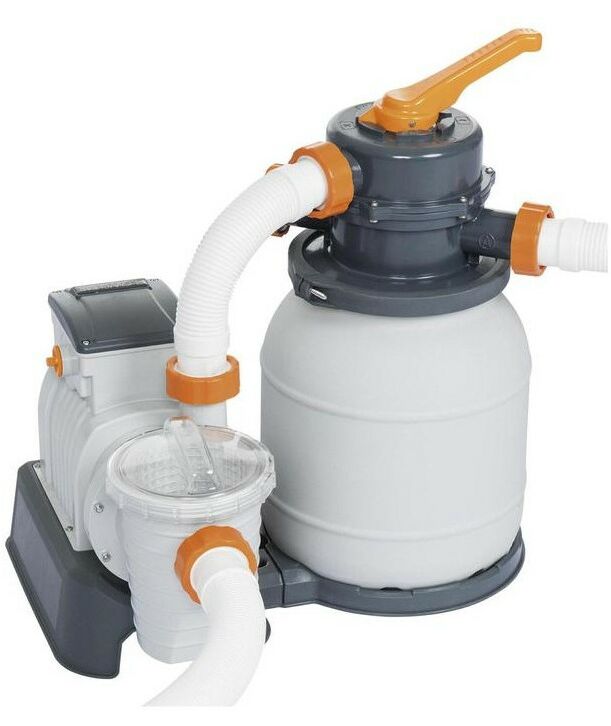 Фильтровальная установка песочного типа Bestway 58497 для домашних надувных и каркасных бассейнов объемом от 1100 до 42300 литров. Насос простой надёжной конструкции с двойной изоляцией и клапаном для воздуха требует минимального обслуживания. Подключается к бассейну двумя шлангами, которые надёжно фиксируются хомутами. Для фильтрации воды используется очищенный кварцевый песок, который очищает воду на 30% эффективнее картриджных насосов и меняется раз в два года. Для удобства оснащён шестью режимами работы с обратной промывкой. Для очистки от крупного мусора имеется специальная корзинка-скиммер.