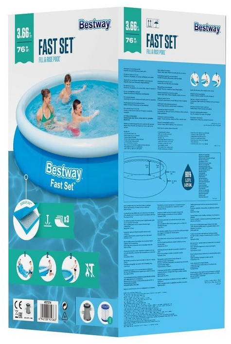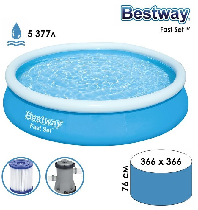Бассейн надувной Bestway Fast Set 366 х 76 см фильтр-насос, от 6 лет [57274]