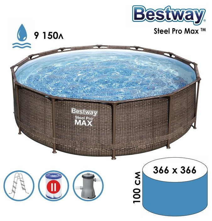 Бассейн каркасный Bestway Steel Pro 366 х 100 см фильтр-насос, лестница [56709]