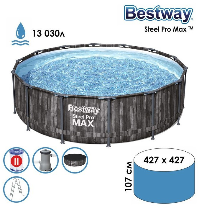 Бассейн каркасный Bestway Steel Pro 427 х 107 см фильтр-насос, лестница, тент [5614Z]