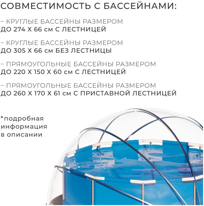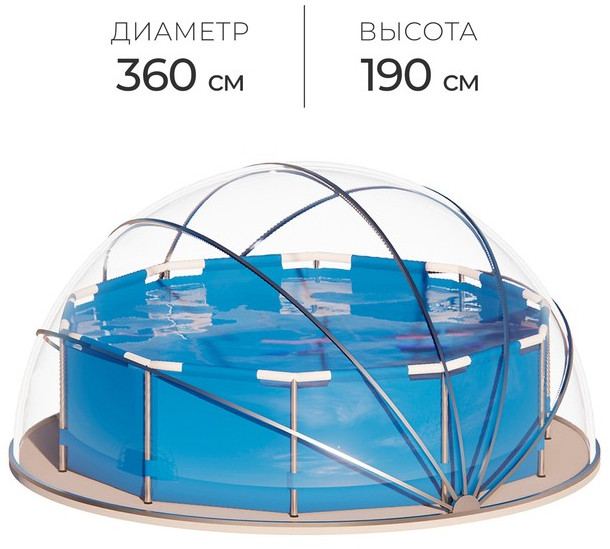 Купол-тент для бассейна d=360 см, h=190 cм, цвет серый