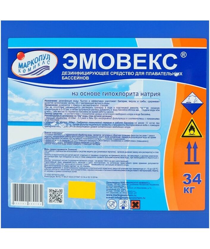 Жидкий хлор для дезинфекции воды Эмовекс 34 кг