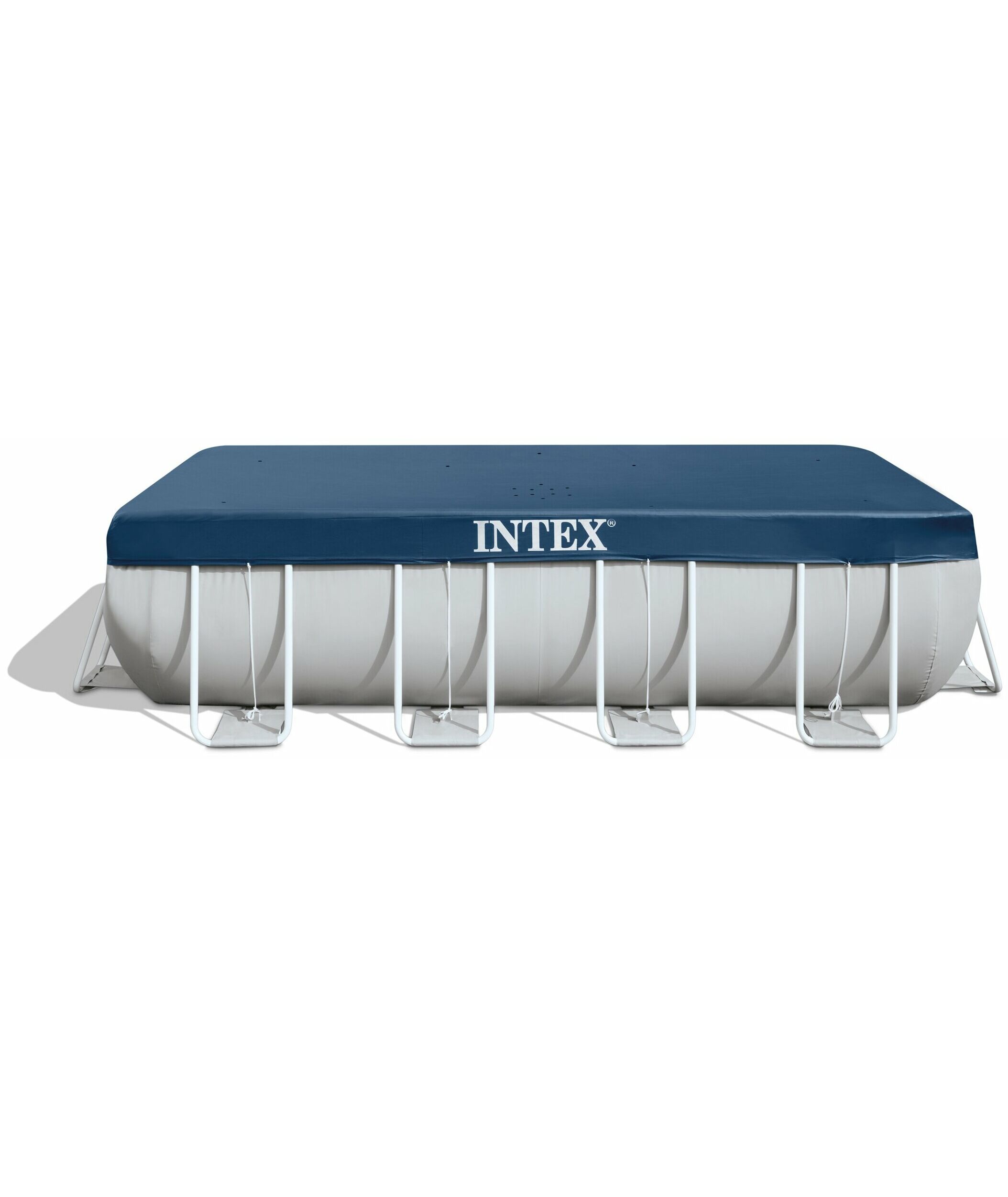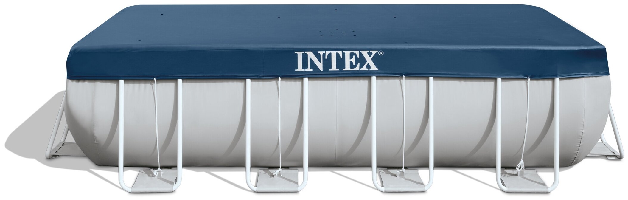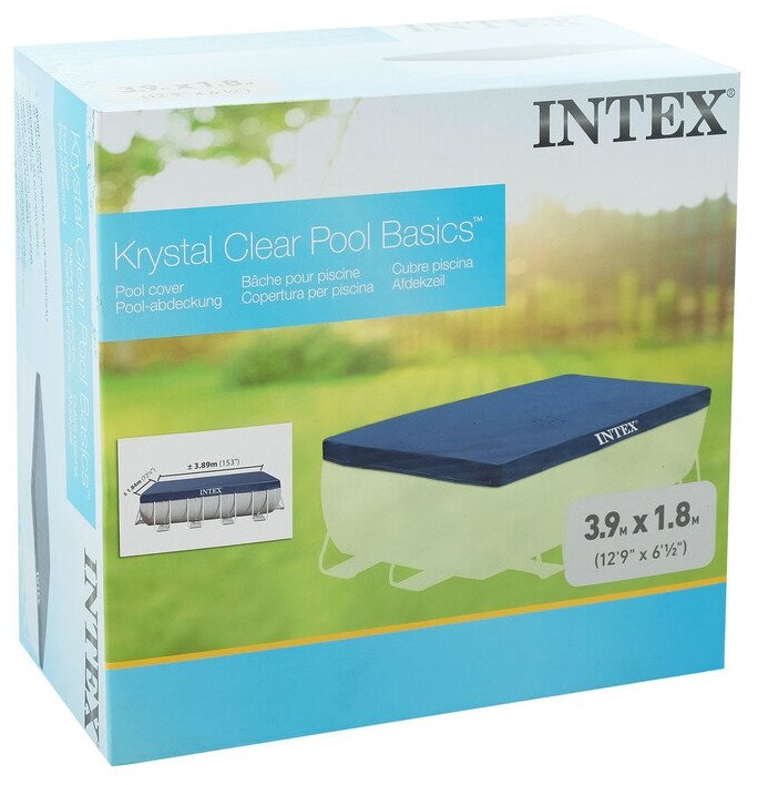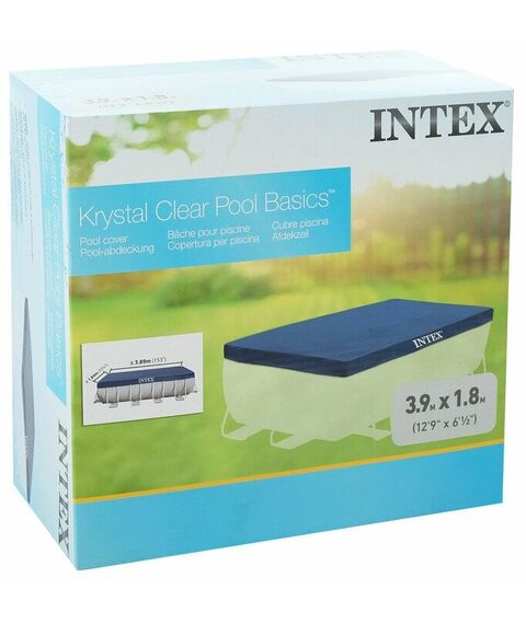 - Тент для прямоугольного каркасного бассейна INTEX 28037 серии Rectangular Pool Cover для комфортного использования бассейна до следующего сезона.