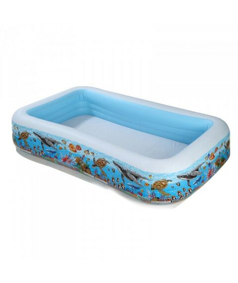 Удобный прямоугольный бассейн Intex представляет собой превосходное место для отдыха всей семьёй в жаркую, сухую, летнюю погоду. Он удобен в использовании, накачав бассейн один раз, вы сможете пользоваться им весь сезон, изредка меняя воду при помощи специального клапана для слива. Широкие борта позволят взрослым присесть. Бассейн рассчитан на несколько человек. Изготовлен из прочного винила, толщина которого составляет 0,38 мм.