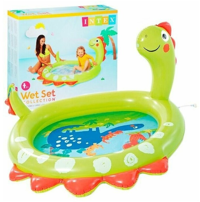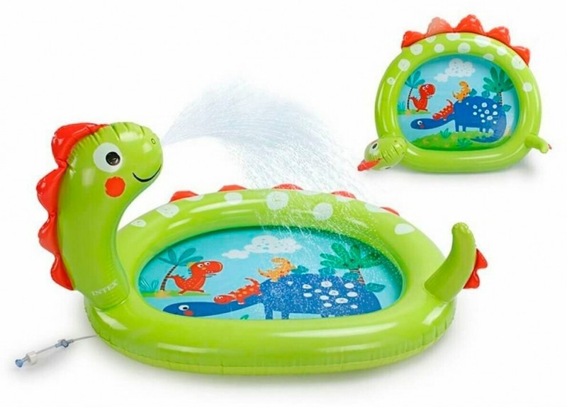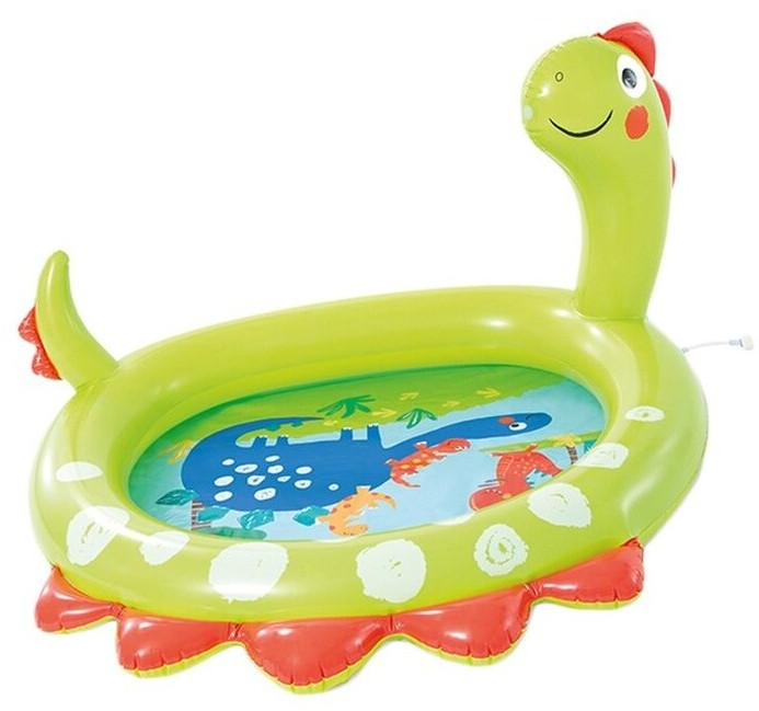- " Динозавр" – детский надувной бассейн от фирмы Intex – все то, что нужно ребёнку в летнюю жару. Яркий окрас и форма бассейна станут оригинальным украшением вашего участка, не оставив равнодушными вас и ваших родных. Небольшой объем бассейна позволяет воде быстро прогреваться под солнечными лучами, избавляя детей от ожидания момента, когда можно освежиться и весело провести время жарким летним днем. Изготовлен из высококачественного винила, устойчивый, надежный и безопасный