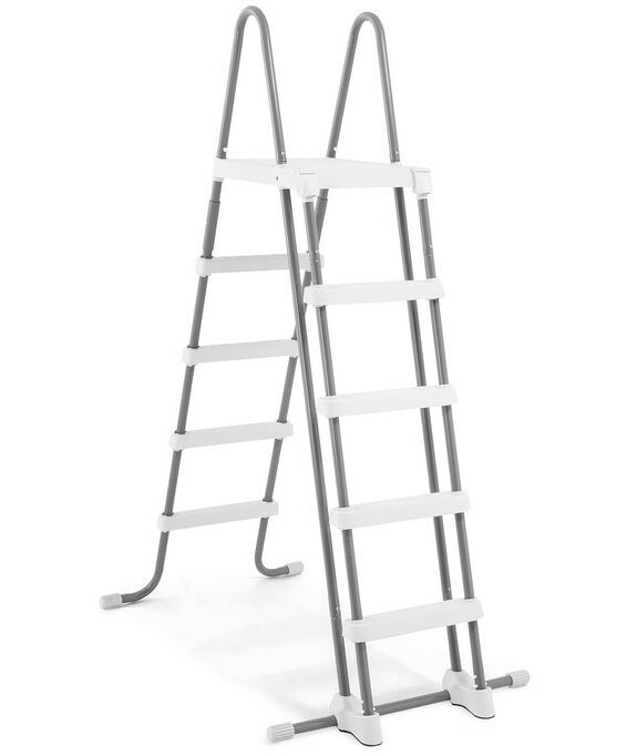 Усиленная лестница Intex 28077, для бассейнов высотой 132 см, с площадкой изготовлена из нержавеющей стали. Прочные пластиковые ступени. Лестница-стремянка легко и быстро устанавливается, имеет очень широкий угол между сторонами, достаточный для того чтобы не задевать стенки бассейна и без особого труда забираться в него. Изготовлена лестница из стали с влагозащищенным покрытием, ступеньки сделаны из усиленного ABS пластика. Стойки лестницы имеют специальные наконечники, защищающие дно бассейна от повреждения. Лестницу можно отрегулировать по высоте, благодаря съемным ступеням.