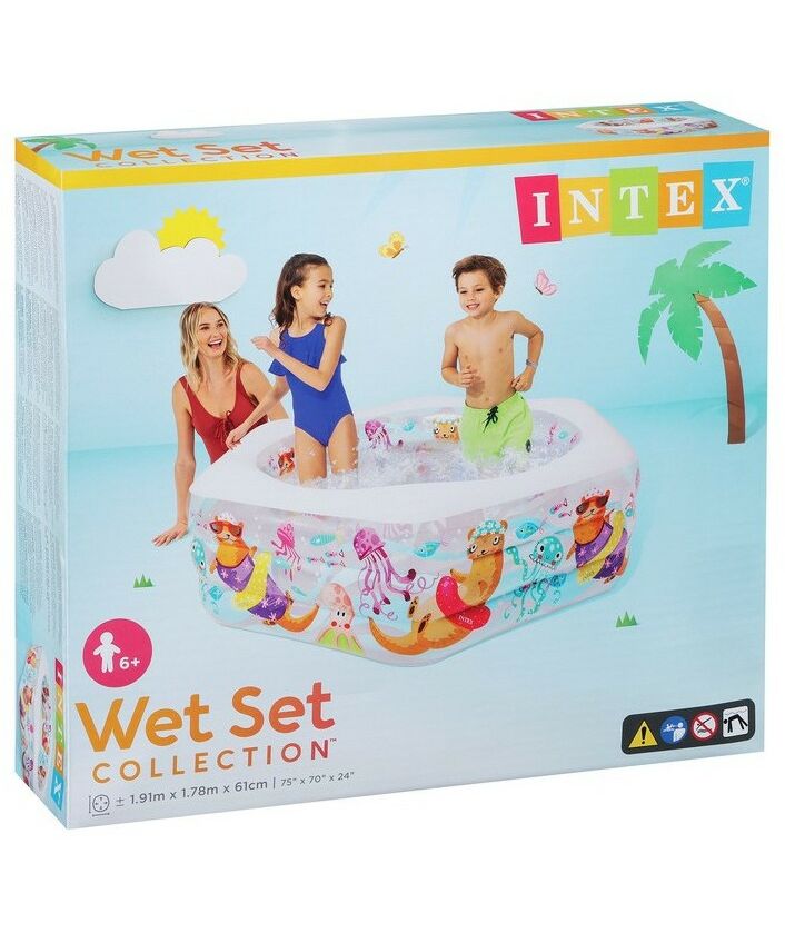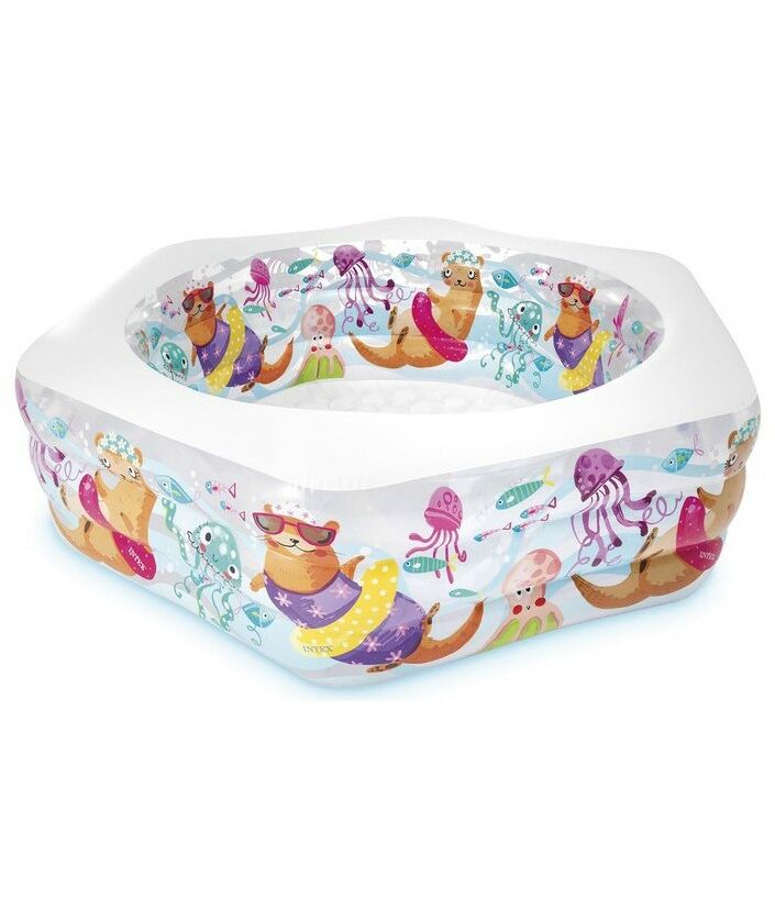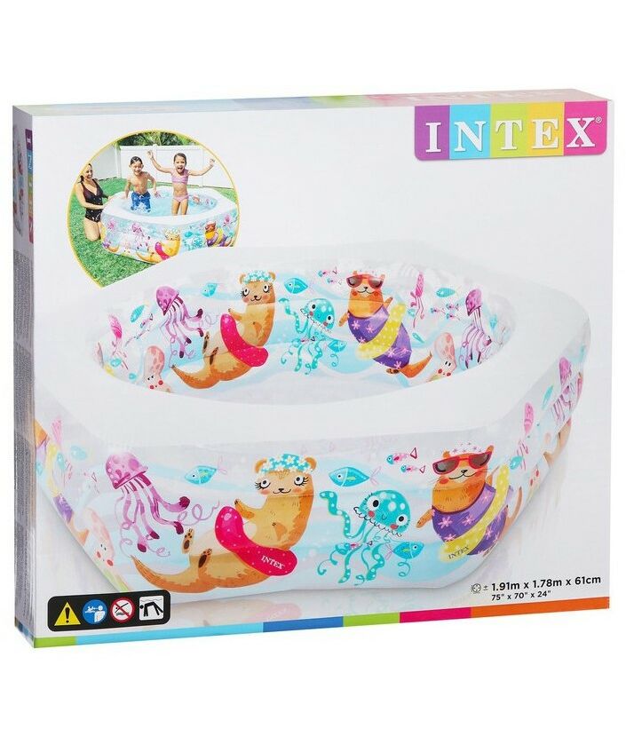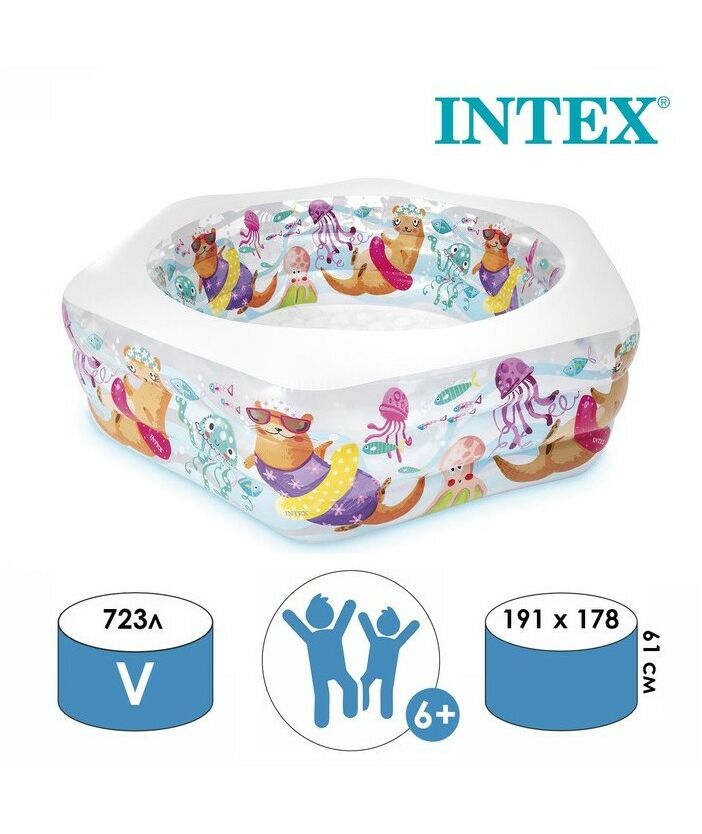 Бассейн надувной Intex Морской риф 3 кольца, надувной пол, 191*178*61 см, от 6 лет [56493]