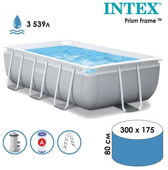 - Каркасный Бассейн Intex Prism Frame 300х175х80см, 26784 совмещает высокое качество и оптимальные цены, отличаясь тем самым от обычных дорогостоящих бассейнов.