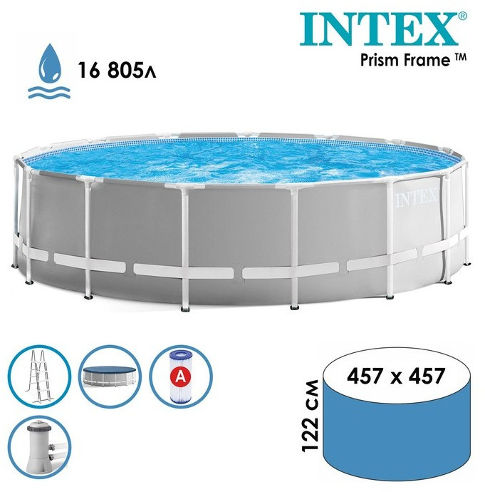 Бассейн каркасный Intex Prism Frame 457 х 122 см фильтр-насос, лестница, тент, подстилка