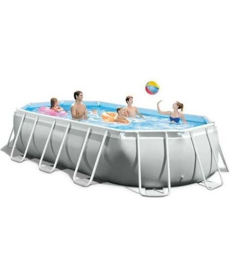 - Сборный каркасный бассейн серии Intex Prism Frame прямоугольной формы в DELUXE комплектации с фильтр-насосом, лестницей, тентом и подстилкой