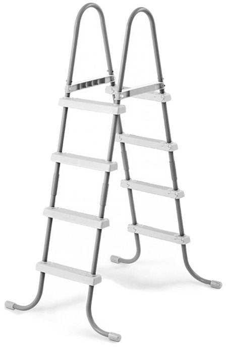 Лестница для каркасных и надувных бассейнов с высотой борта 122 см. Легко и быстро устанавливается, имеет широкий угол между сторонами, достаточный для того, чтобы не касаться стенок бассейна и в то же время быть удобной в использовании. Стойки лестницы металлические с влагозащищенным покрытием, имеют специальные наконечники-колпачки, защищающие дно бассейна от повреждения. Ступеньки сделаны из усиленного ABS пластика, имеют противоскользящую насечку.