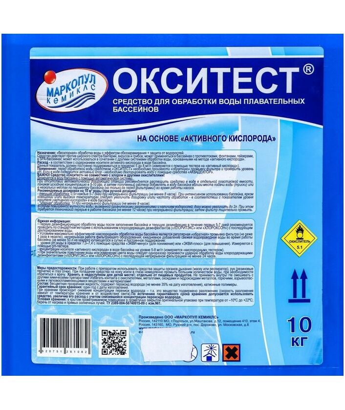 Активный кислород для обработки воды в бассейне Окситест 10 кг