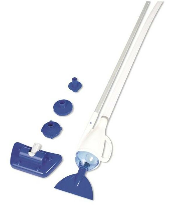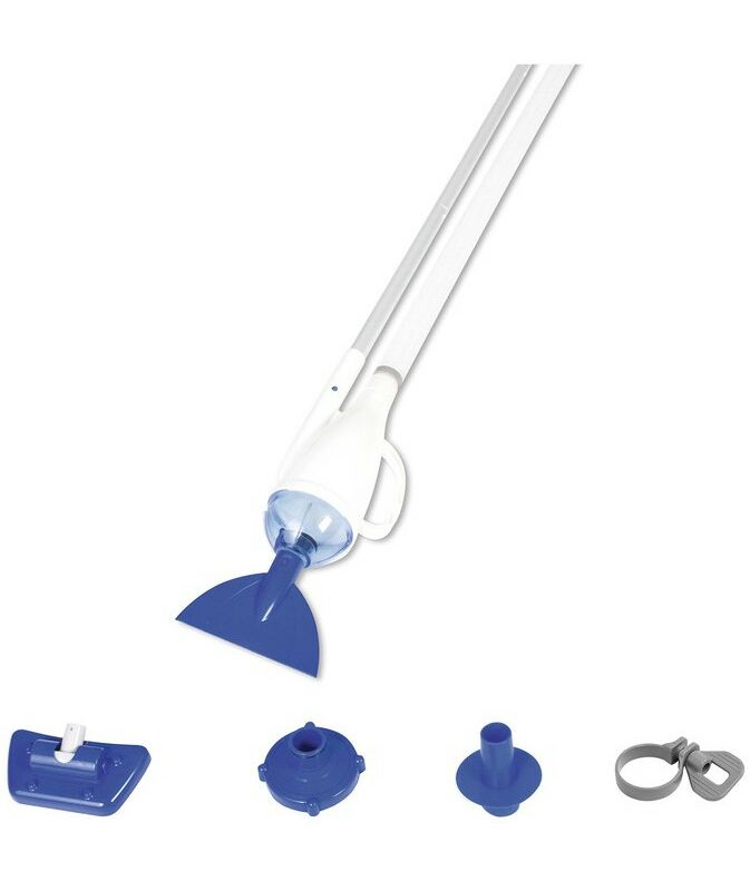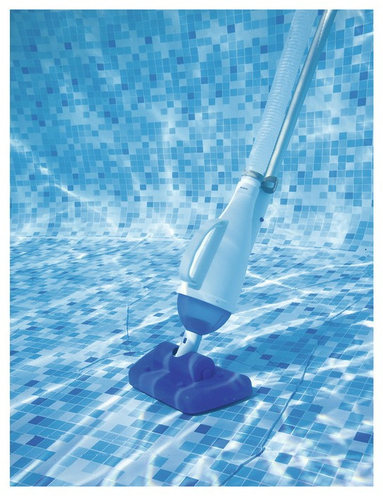 Вакуумный очиститель — устройство, которое упростит процесс ухода за бассейном. Когда вы подключите фильтр-насос, он автоматически начнёт работу. Благодаря четырёхсекционной телескопической трубке хорошо прочищаются труднодоступные места. Съёмные насадки подходят для лёгкой и тщательной уборки. В комплект входят адаптеры для разных типов насосов.
