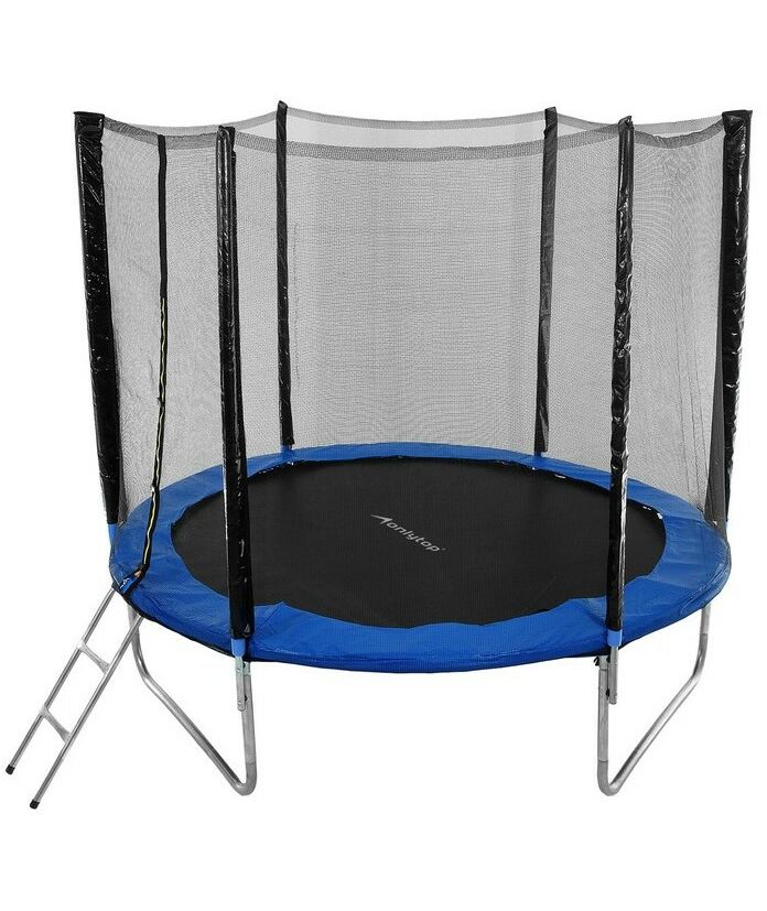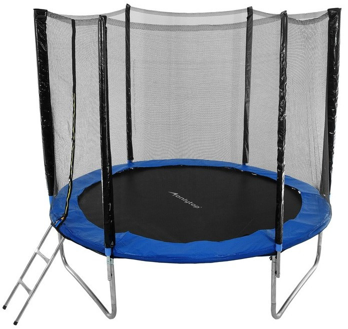 Батут ONLITOP d=244 см с внешней защитной сеткой и лестницей, цвет синий