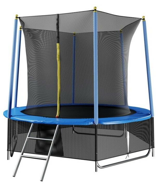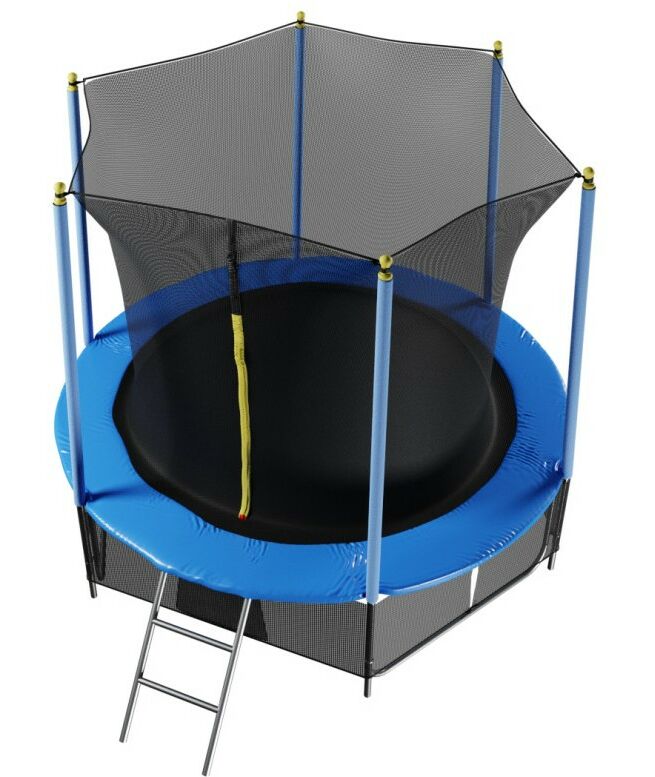 - Каркасный батут диаметром 2,44 метра с верхней и нижней защитной сеткой и лесенкой в комплекте — отличный спортивный снаряд для организации семейного отдыха. Предназначен для установки в помещениях или на открытом воздухе. Прекрасно переносит непогоду и прослужит вам долгое время. Изготовлен в соответствии с международными стандартами качества ISO9001.