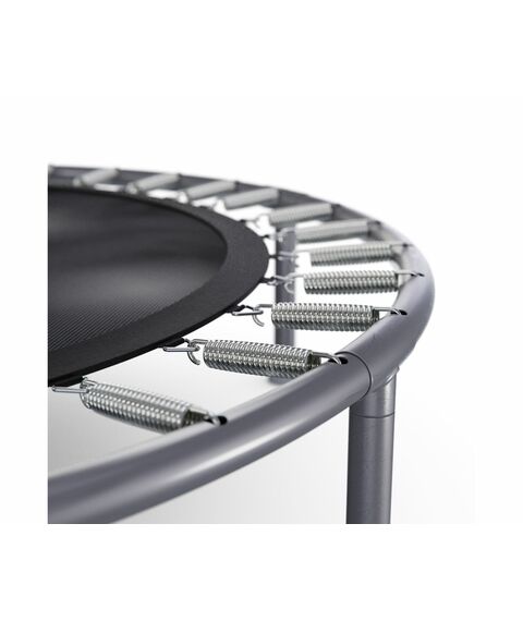 Безопасный и прочный: этот батут, оснащенный 34 усиленными пружинами и стальной рамой для обеспечения долговечности.