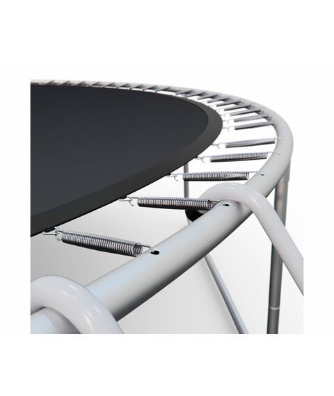 - На этом батуте установлено 108 надежных пружин, которые обеспечивают оптимальную жесткость и позволяют прыгать с большой высоты без риска травмы. Пружины диаметром 22 и длиной 178 миллиметров, обеспечивают плавный и мягкий прыжок.