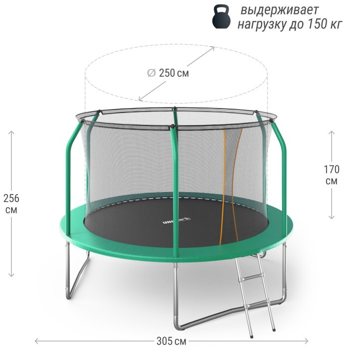 - Рама батутов UNIX Line Supreme Basic Series выполнена из высокопрочной стали, рассчитанной на долгие часы прыжков. Устойчивость на поверхности гарантируют 3 опорных стоек W-образной формы. Оборудование выдерживает вес пользователя до 150 кг.