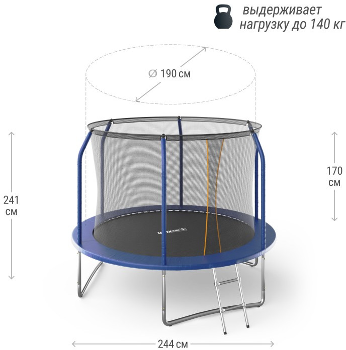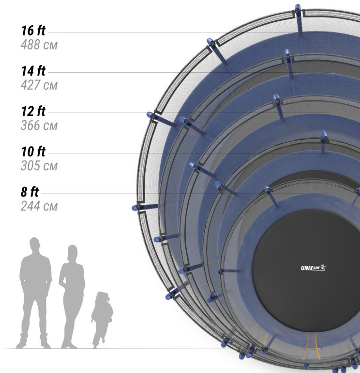 - Рама батутов UNIX Line Supreme Basic Series выполнена из высокопрочной стали, рассчитанной на долгие часы прыжков. Устойчивость на поверхности гарантируют 3 опорных стоек W-образной формы. Оборудование выдерживает вес пользователя до 140 кг.