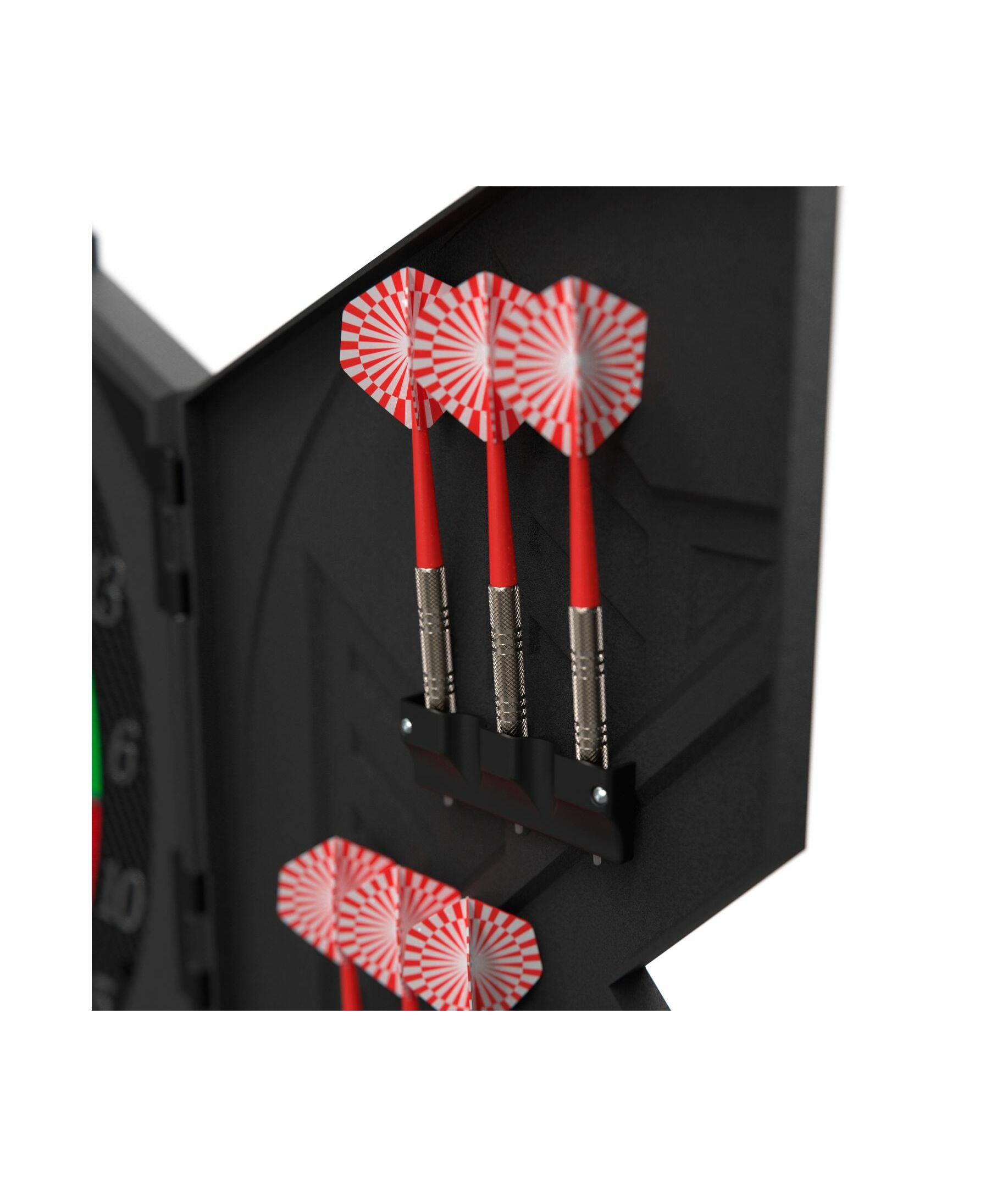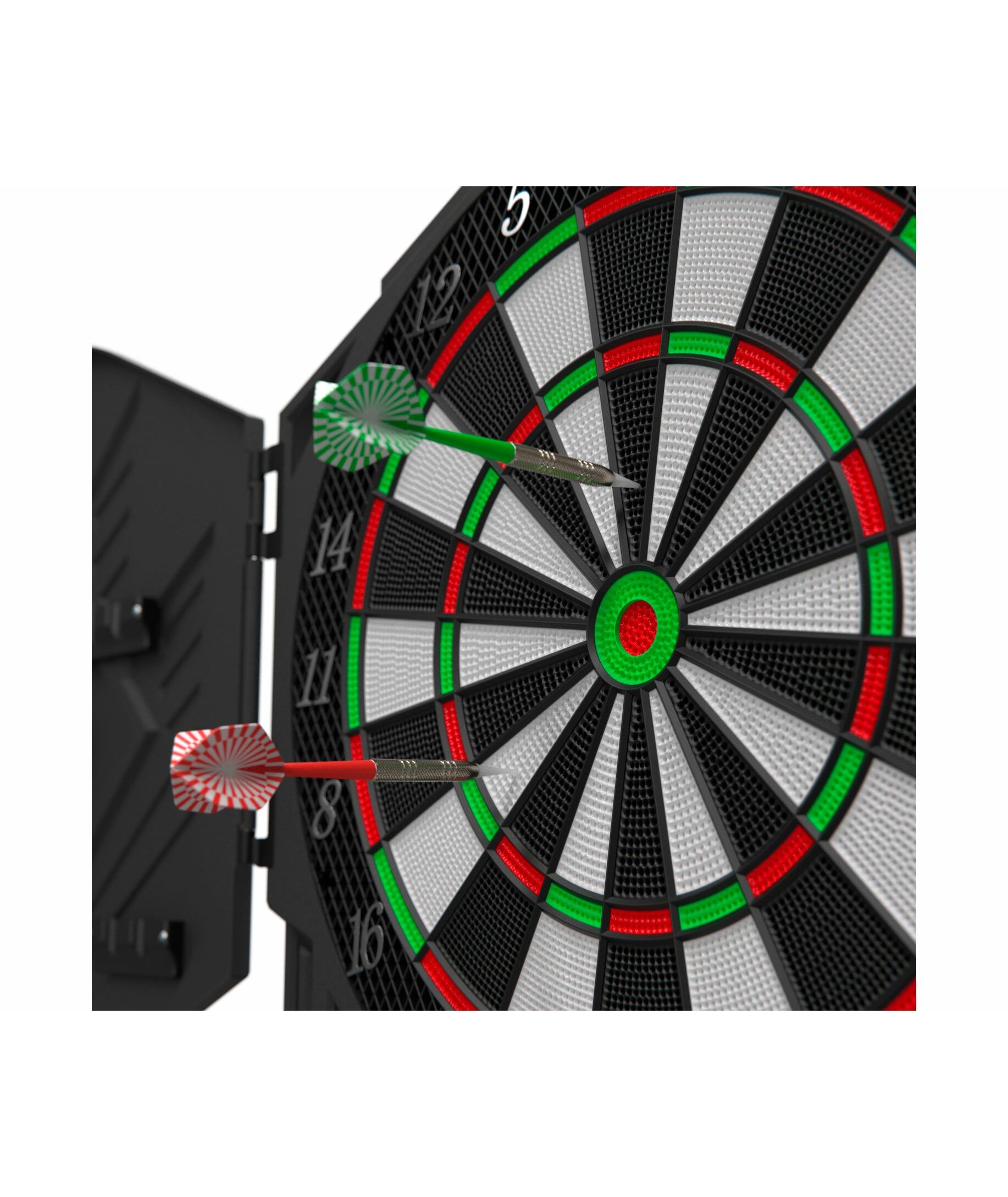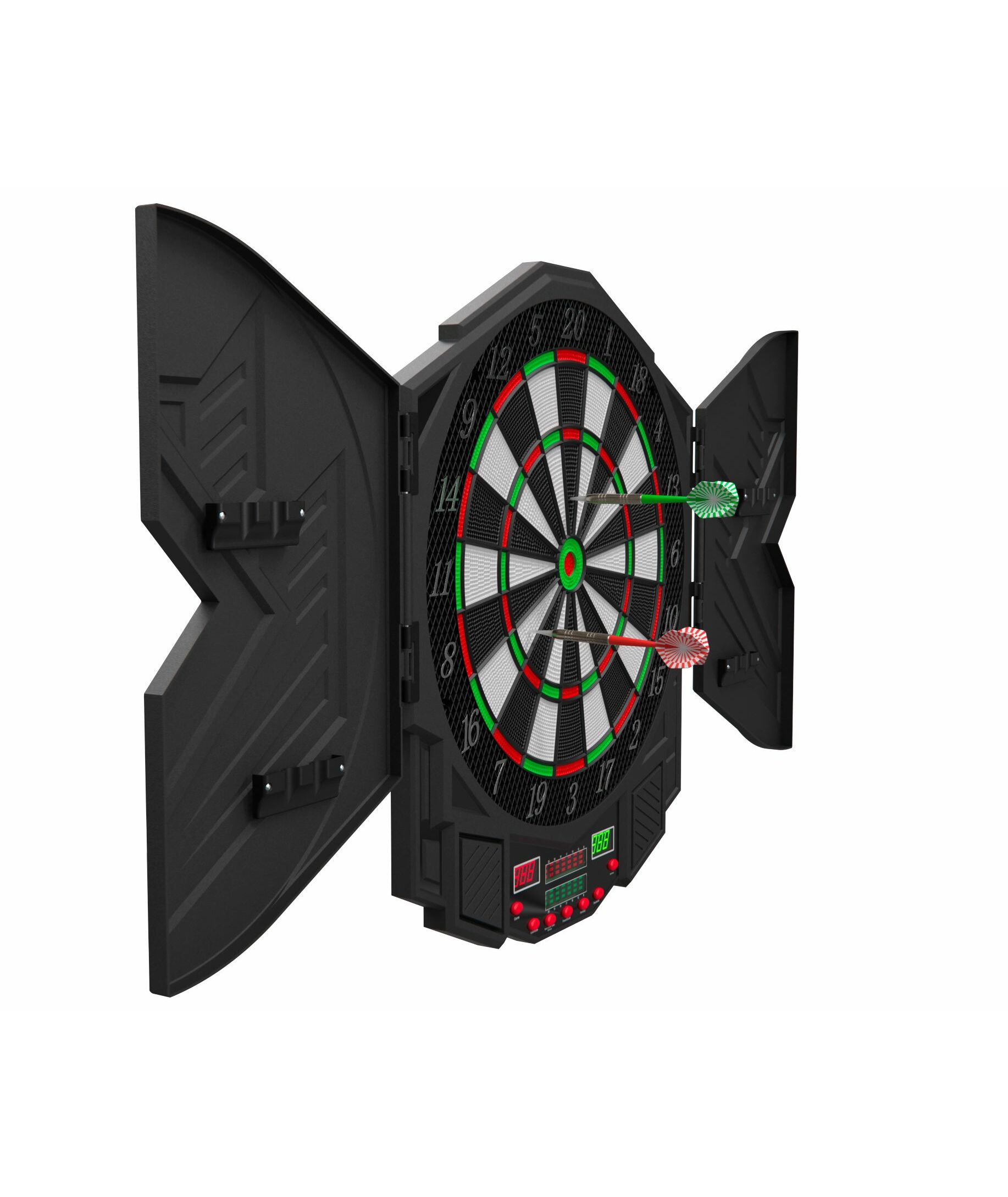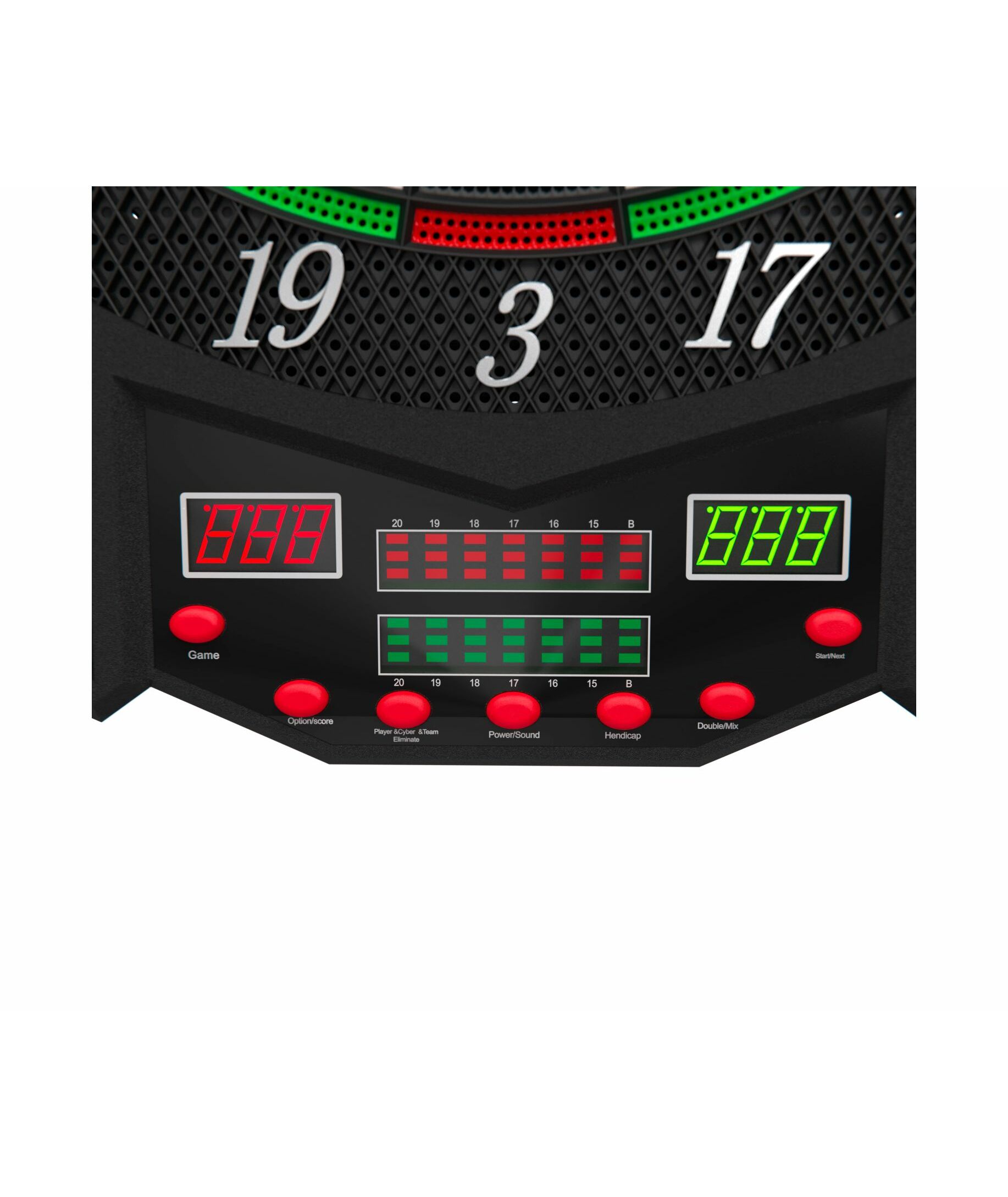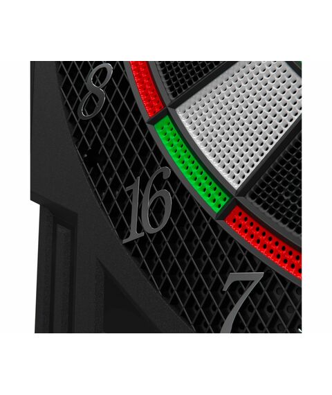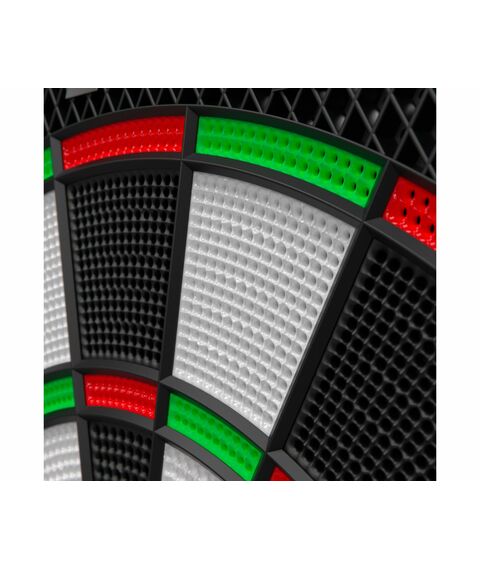 Изделие имеет семисегментный дисплей с яркими светодиодами, который включает в себя 27 различных игр и 216 опций. Также, счет очков для каждой команды подсвечивается другим цветом: зеленым или красным. Одновременно в дартс могут играть от 1 до 8 игроков, а подсчет очков для всех сегментов выполняется автоматически. Возможность звукового сопровождения игры сделает ее более активной и увлекательной.