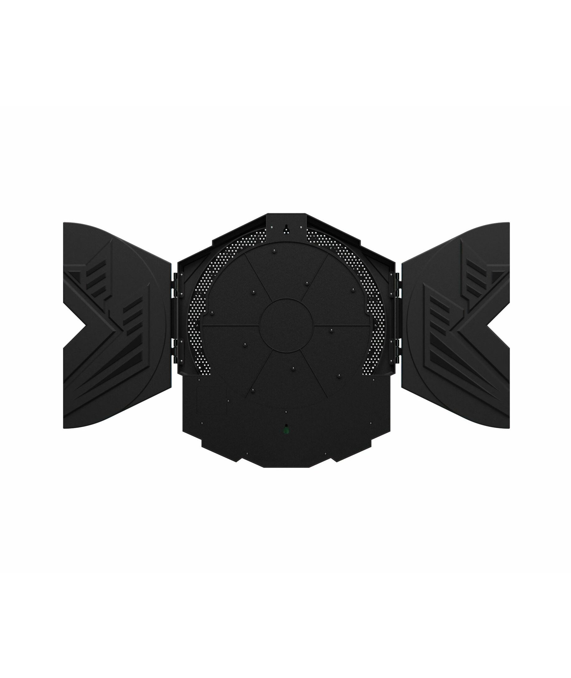 Диаметр мишени составляет 47 см, а материал изготовления - пластик. Раскладные створки позволяют хранить дротики после игры и компактно убирать мишень.