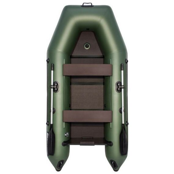 Лодка ПВХ АКВА 2900 слань-книжка киль зелёный двухместная, грузоподъемность 350 кг, вес 32 кг, 3 отсека + киль, мощность двигателя 9.8 л.с, 2900x1420x400, плотность ткани: 850 гм