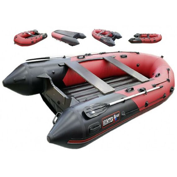 Надувная лодка Хантер 350 ПРО со стационарным вклеенным умеренно-килевым дном низкого давления (НДНД) рассчитана на использование с мотором до 15 л.с. с максимальной загрузкой до 600 кг. Предназначена для рыбалки, охоты и активного отдыха на воде небольшой компанией. Выпускается в двух расцветах - комбинированном красно/черном цвете и комбинированном черно/камуфлированном цвете.