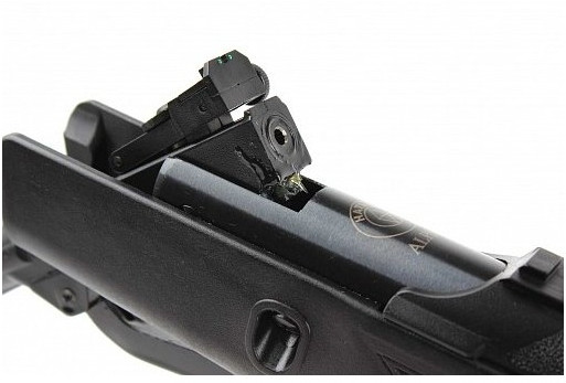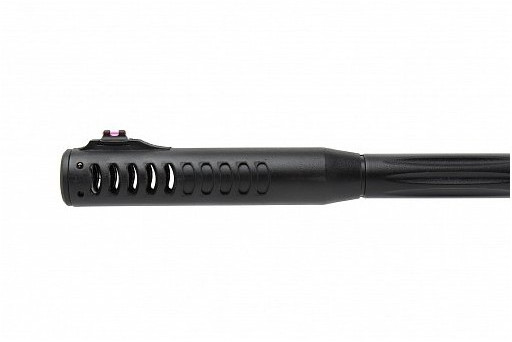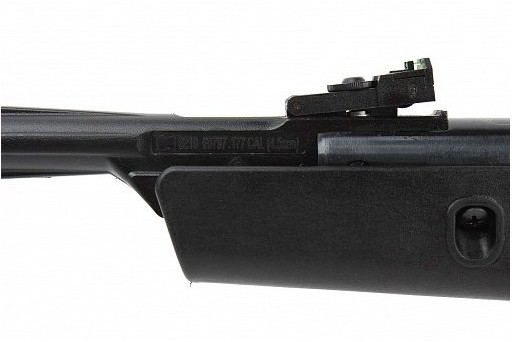- По принципу действия данная винтовка принадлежит к пружинно-поршневому типу. Винтовка очень удобная в работе и простая по конструкции: имеет нарезной ствол, укороченный внутренний стволик, кожух ствола, а также ложе и приклад выполнены из высококачественного композитного пластика, который обладает высокой прочностью. На прикладе имеется подщечник эргономичной формы, удобный и левшам, и правшам. Мягкий затыльник приклада обеспечивает гашения порядка 50% отдачи.