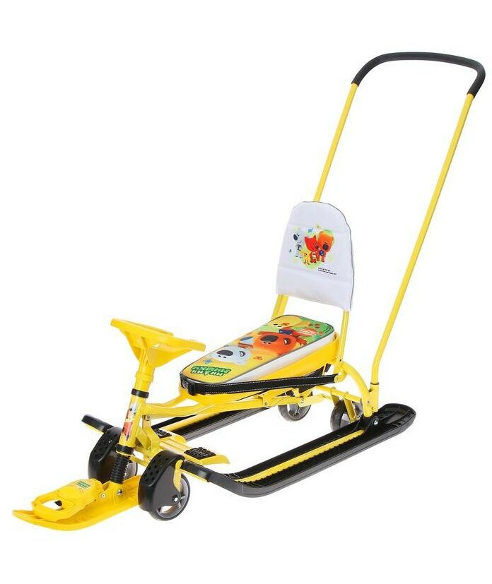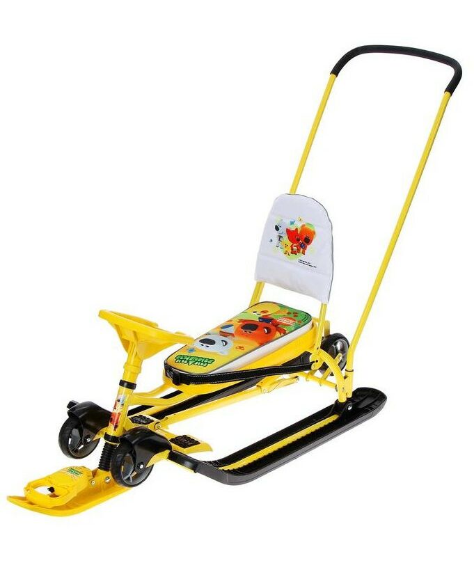Снегокат предназначен для детей от 1,5 лет, оснащён механизмом выдвижных шасси и родительской ручкой-толкателем.